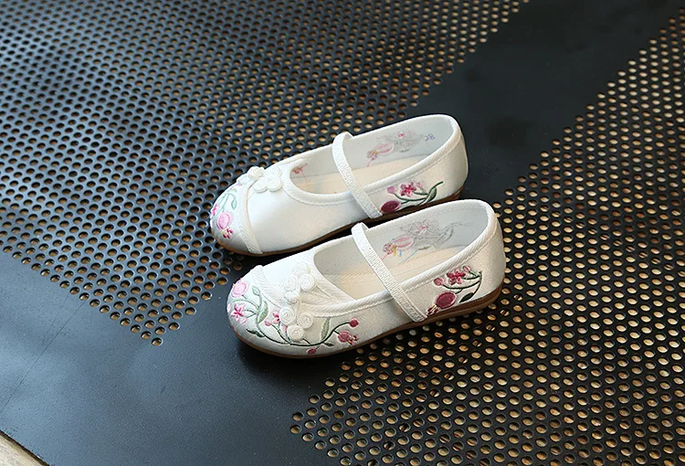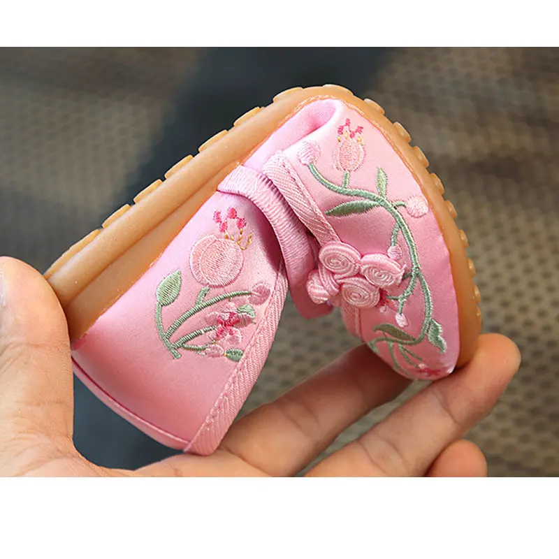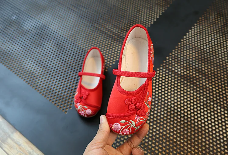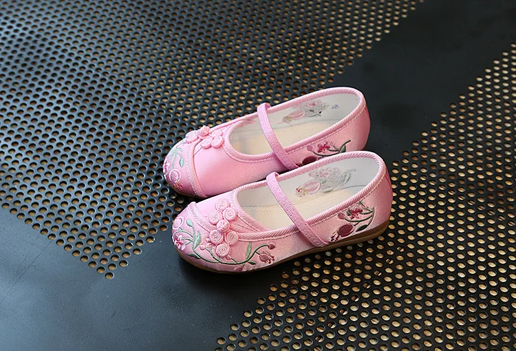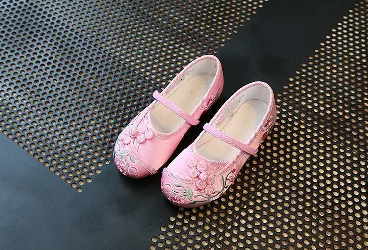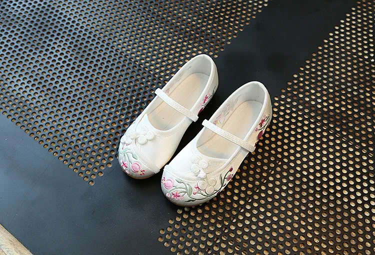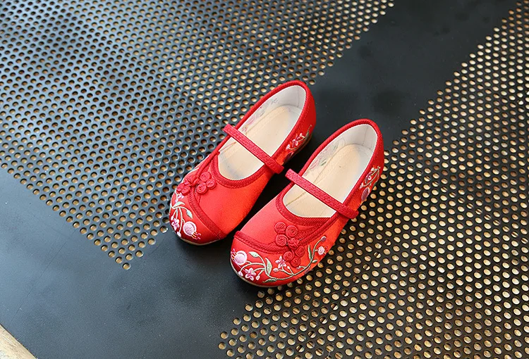 Детская парусиновая обувь на плоской подошве с вышивкой; Повседневная прогулочная обувь в винтажном стиле для девочек; обувь в китайском стиле Старый Пекин; модельные туфли принцессы в стиле Тан