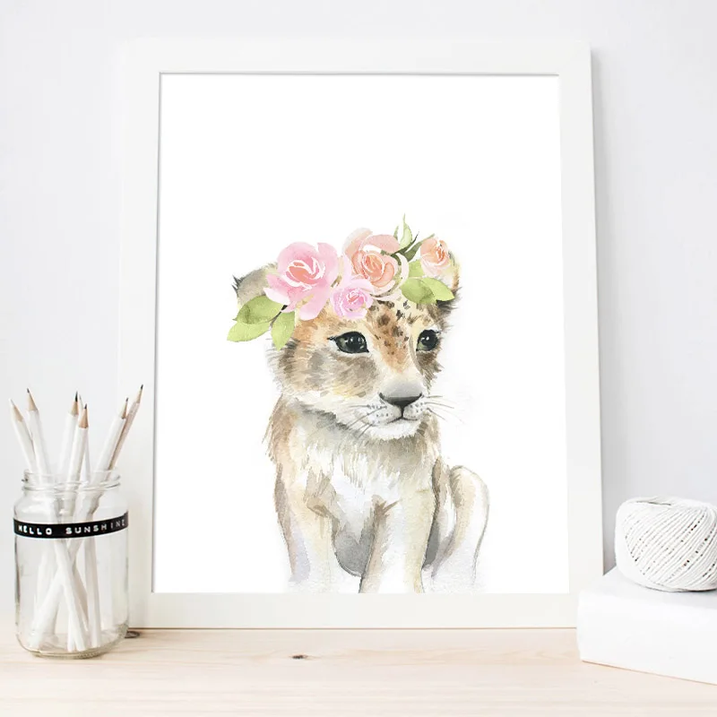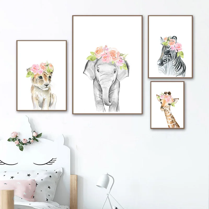 Милый Постер для детской комнаты с животными, слон, лев, леопард, м...