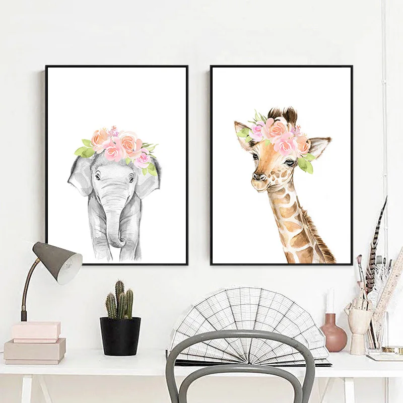 Картина с жирафом, Кроликом, слоном, детская, плакат для детской