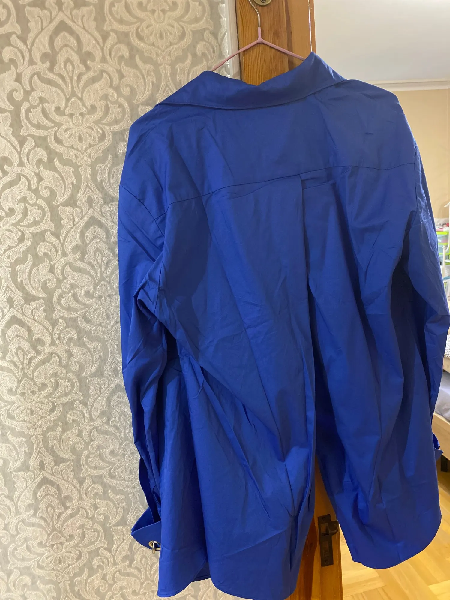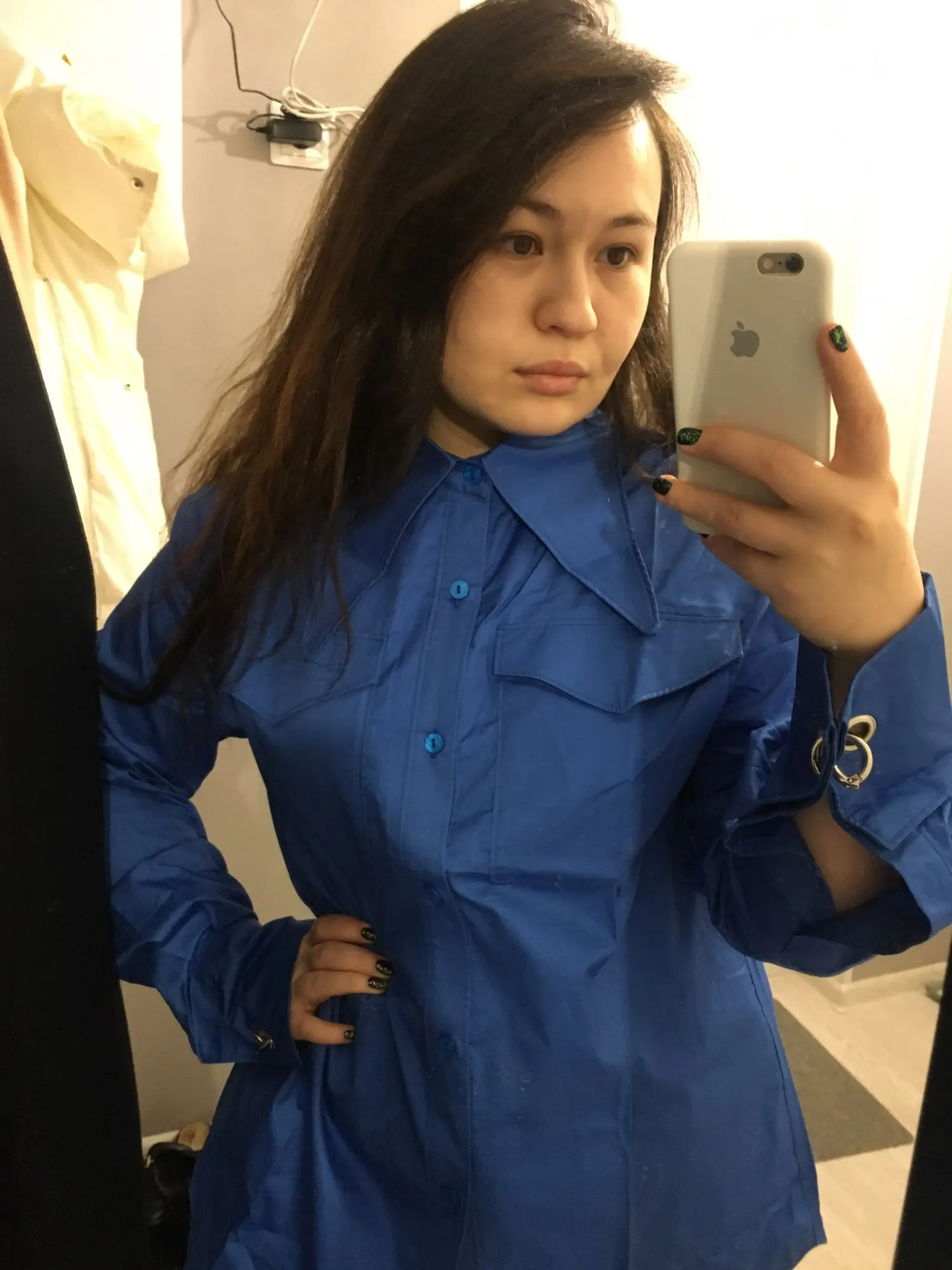 Доставка полтора месяца. Рубашка пришла с браком асимметрично пришитыми карманами, криво сшитым верхом кармана, и разной по размеру отстрочкой рукавов.Ткань плотная не просвечивает имеет лёгкий сатиновый блеск. Замеры рубашки в размере S - длина полочки 74 см, длина спинки 78 см, ширина плеч 47 см, ширина изделия 52 см, длина рукава 64 см. Перед покупкой я писала продавцу чтобы он перед отправкой проверил товар на наличие именно такого брака на что он ответил что всё будет Ok. И в итоге пришло вот это...