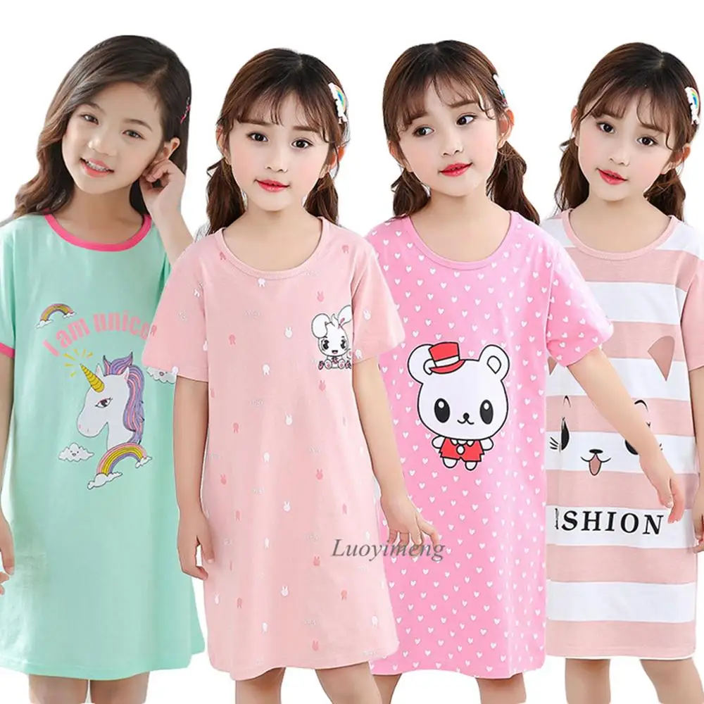 Летняя хлопковая ночная рубашка для девочек, ночная рубашка с единорогом, ночная рубашка для подростков, пижамные платья для маленьких девочек, одежда для сна с героями мультфильмов, детская одежда для сна