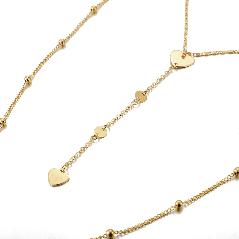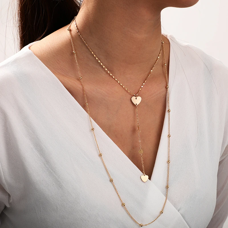 Колье женское многослойное с кулоном в виде сердца, 9039