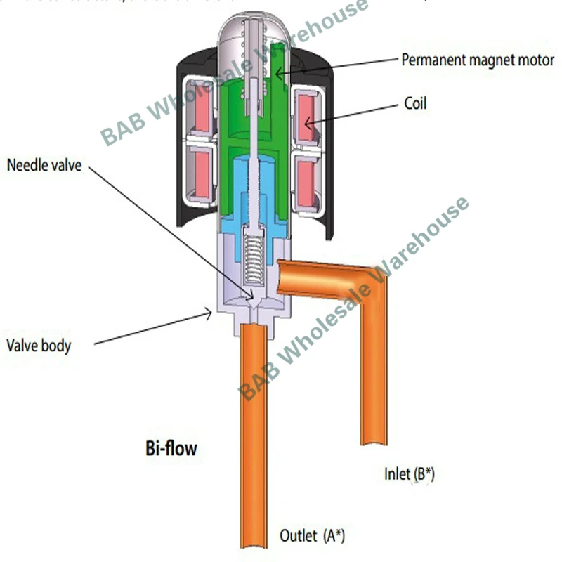 Электронные расширительные Клапаны предназначены для использования в системах кондиционирования и переоснащения или в тепловых насосах. Клапан поддерживает автоматическую регулировку скорости потока хладагента и заставляет систему работать в оптимизированных условиях с целью быстрого охлаждения или нагрева, точного контроля температуры и энергосбережения. Клапан также можно предъявить иск, например, для контроля давления всасывающей линии. Эти клапаны обеспечивают двунаправленную работу для контроля расхода хладагента в режиме нагрева или охлаждения.