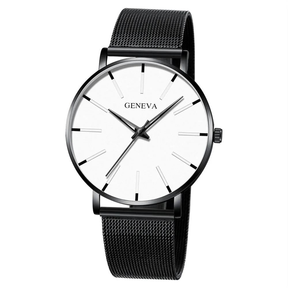 Мужские Аналоговые кварцевые наручные часы из нержавеющей стали, простые, унисекс, деловой профиль, серебристый сетчатый ремешок, минимализм, Reloj Hombre