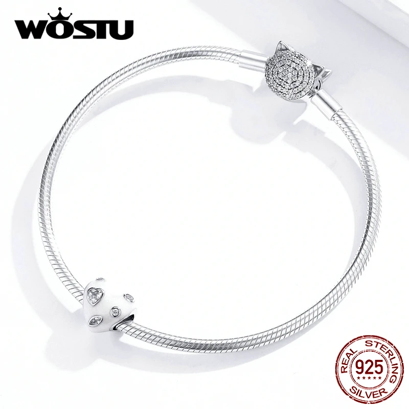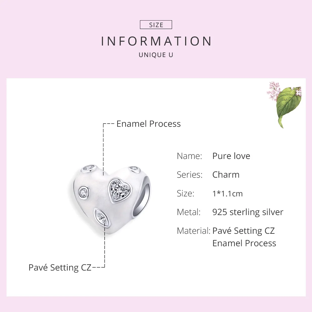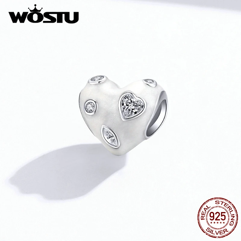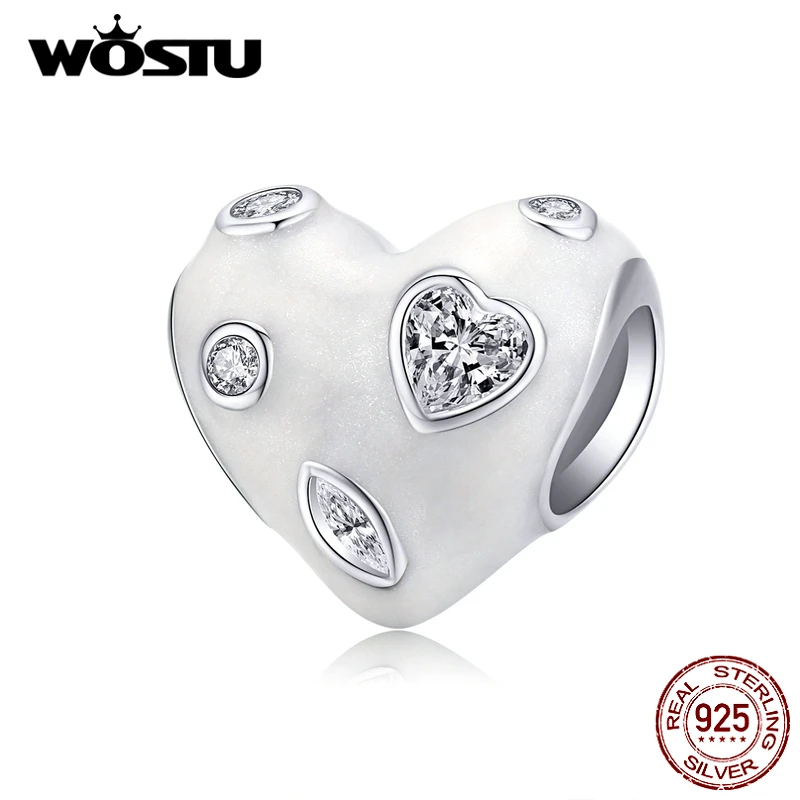 Подвеска для браслета из серебра 925 пробы, с белым сердцем