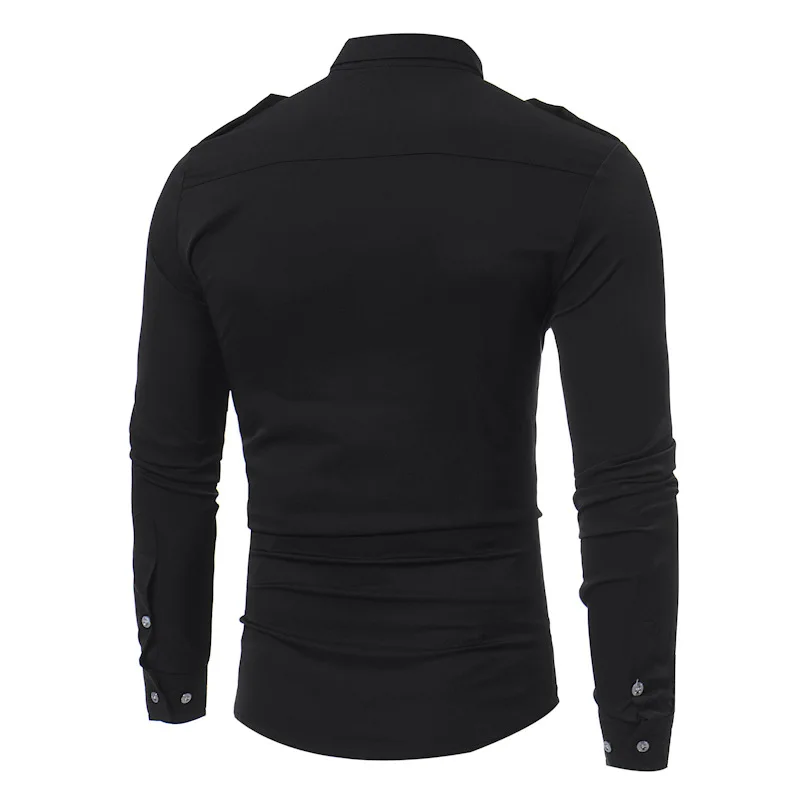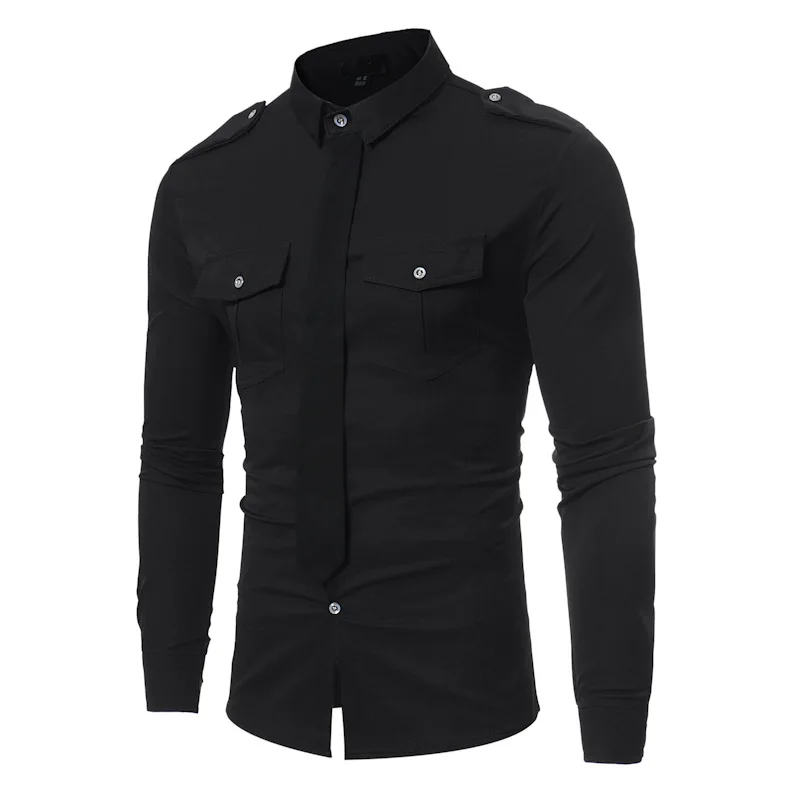 Мужская рубашка с двумя карманами, облегающая Классическая рубашка в стиле милитари, Повседневная рубашка с длинными рукавами, осень 2021
