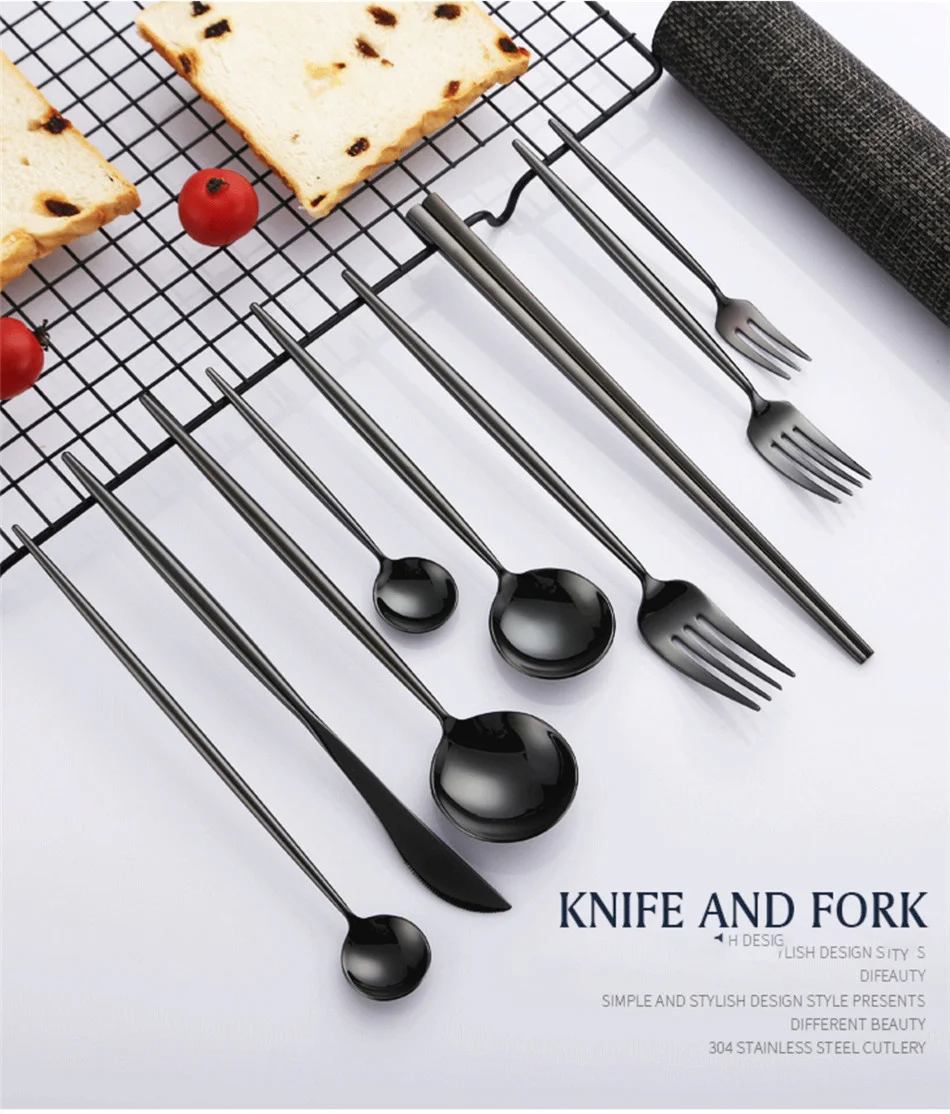 Набор столовых приборов из нержавеющей стали 304 в западном стиле, нож и вилка, ложка, четыре бумажных ложки