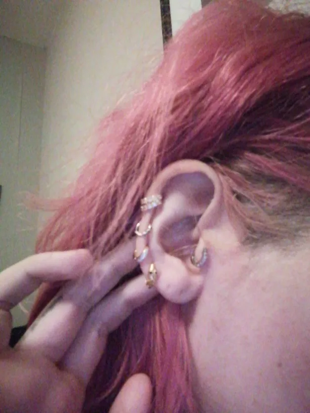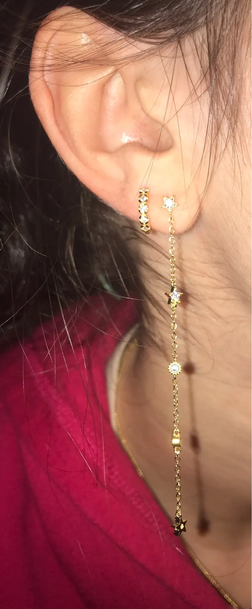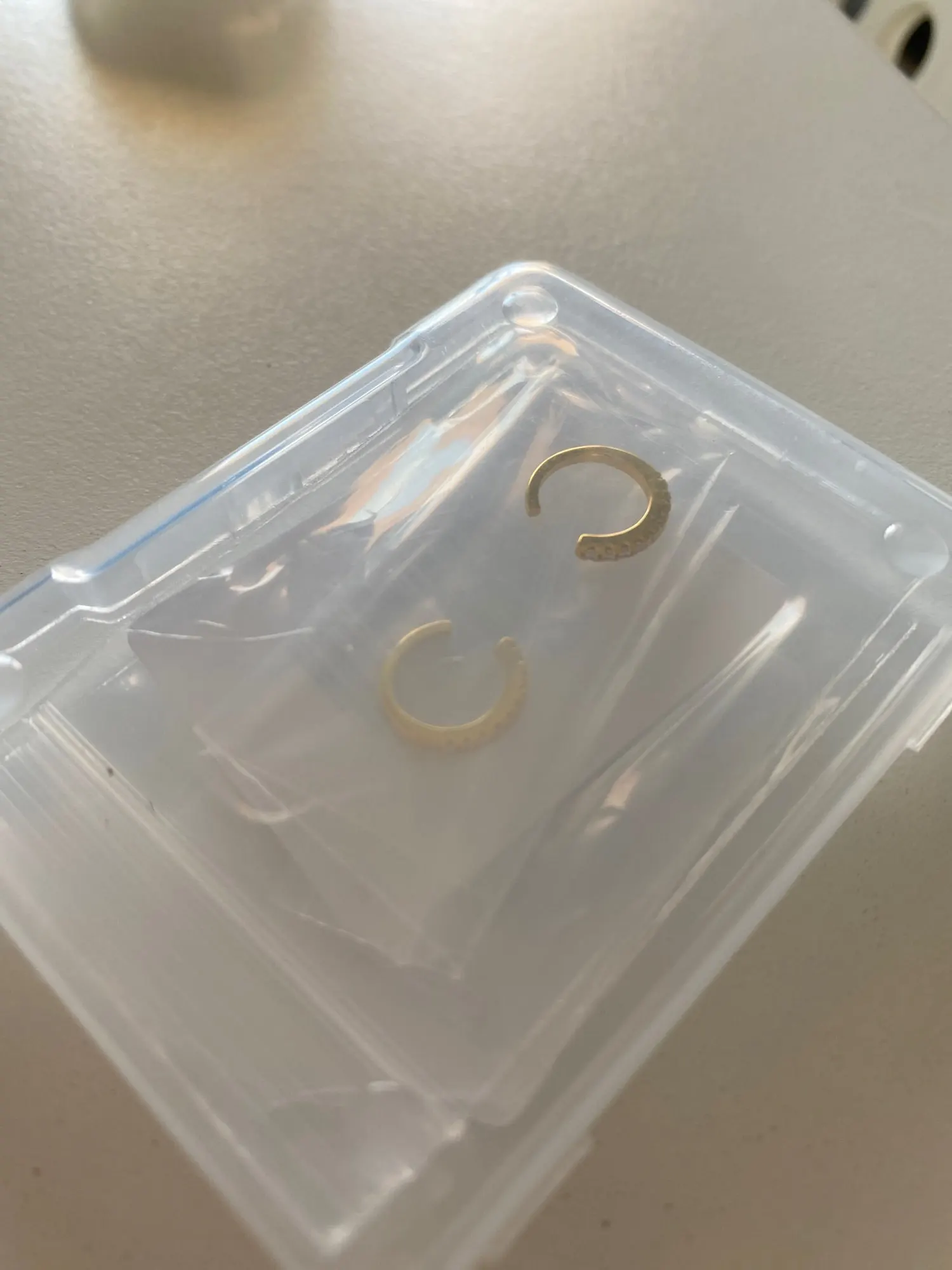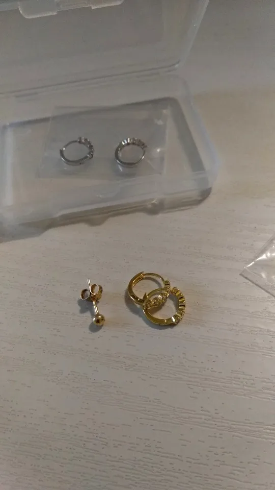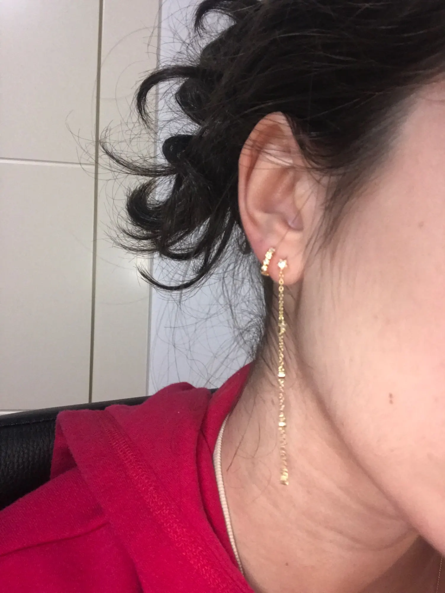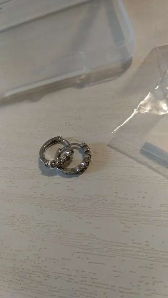 Очень красивые серьги. Сначала он был Согнут, я думал, но все подошло хорошо. Они прочно сидят и обесцвечиваются, а не в душе.