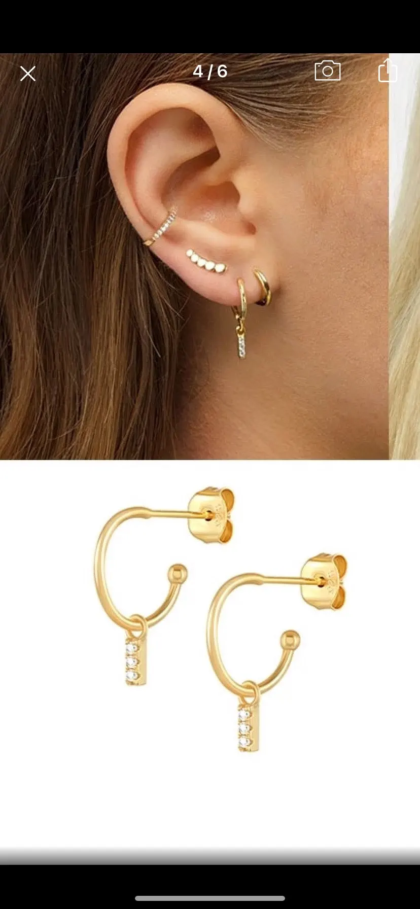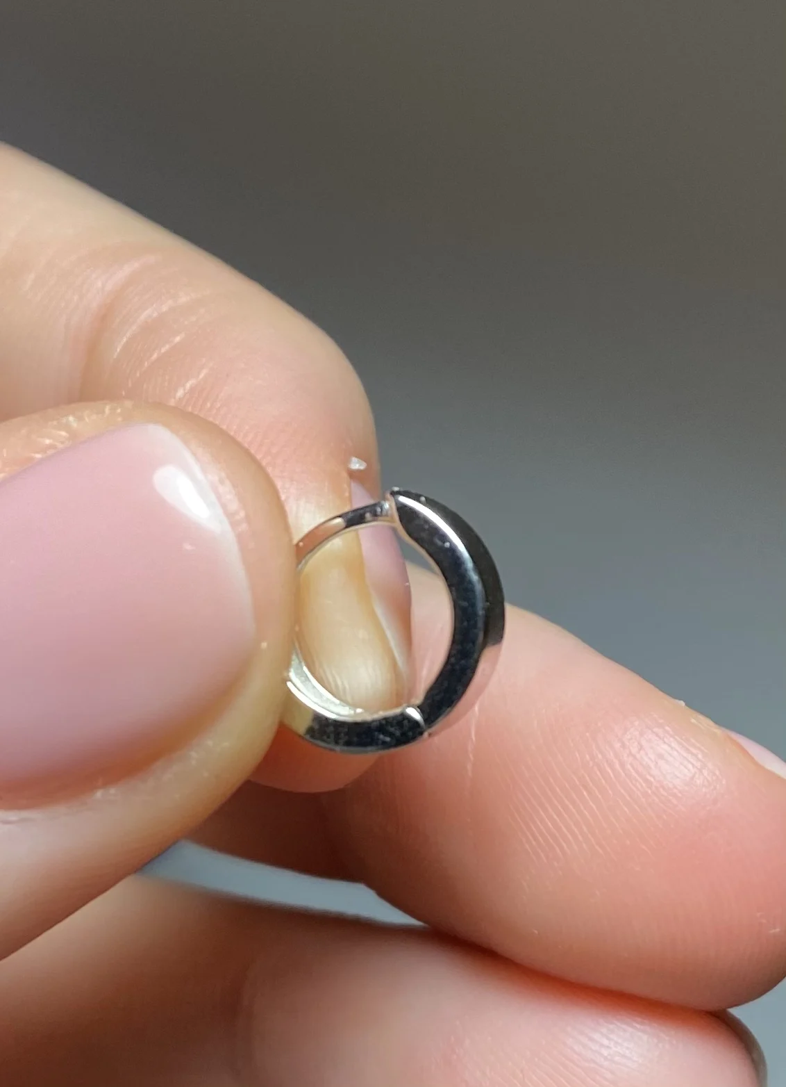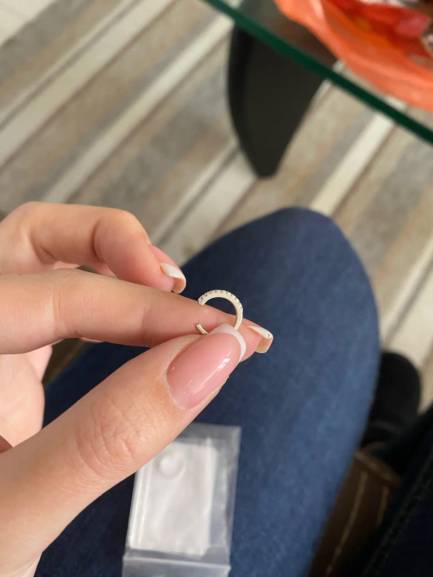 Они очень маленькие, очень изящные и изысканные ювелирные изделия, очень хорошее качество, мне они очень понравились, хотя я ожидала, что они немного больше, они выглядят как для детей или для пирсинга, они довольно хорошо сделаны, и у них есть крошечная отметка из серебра 925 пробы, Я не знаю, исчезнет ли цвет, иначе он станет уродливым в данный момент.