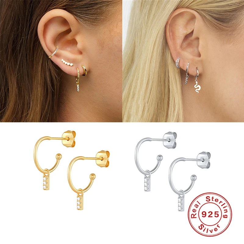 925 пробы серебряные серьги для женщин, золотые маленькие серьги-кольца, серьги для девушек, серьги с цирконами в виде змеи, звезды, глаз, A30