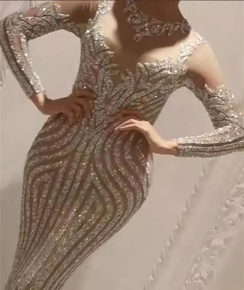 Роскошные серебряные платья-русалки для выпускного вечера с бусинами и камнями, 2020 женское блестящее вечернее платье