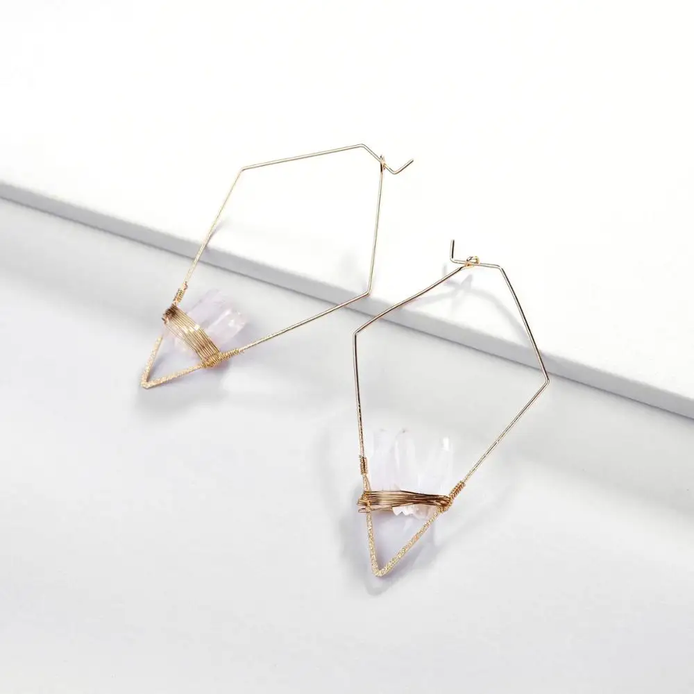Большие серьги в европейском и американском стиле, медная проволока, геометрический наконечник, натуральный кристалл, колонна, кристалл, зуб, камень в оплетке для женщин