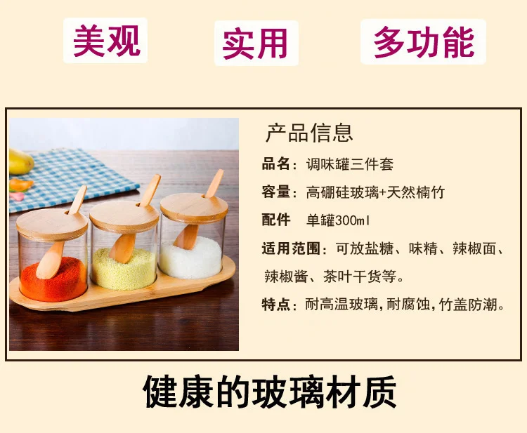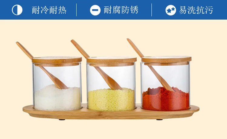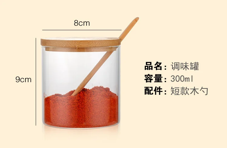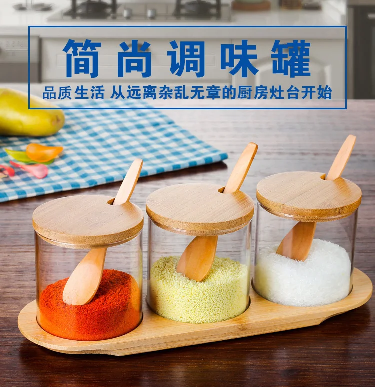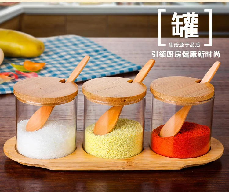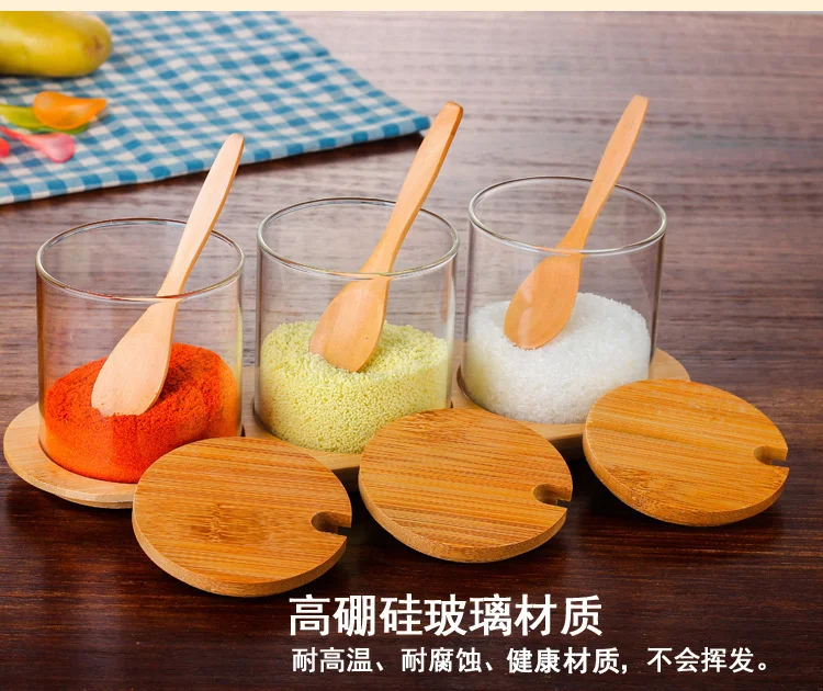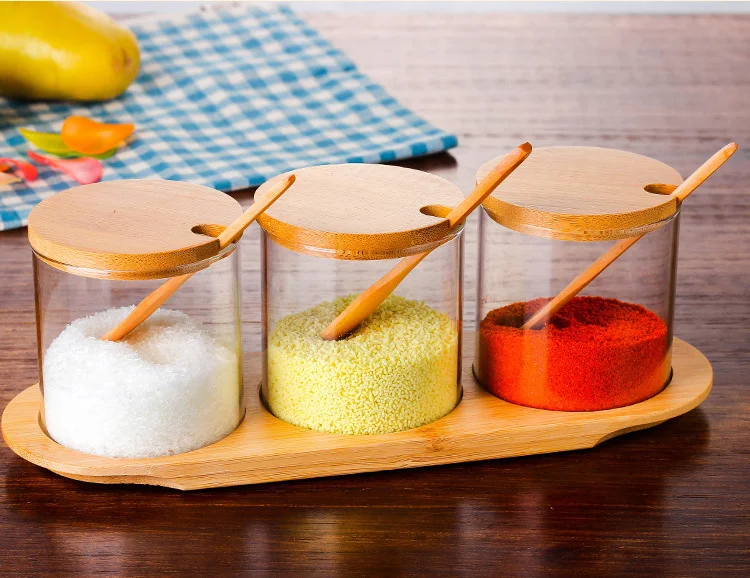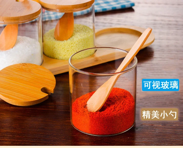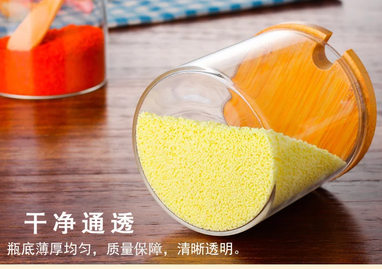 Стеклянная бутылка для приправ, шейкер для соли, кухонные контейнеры для хранения с бамбуковой губой