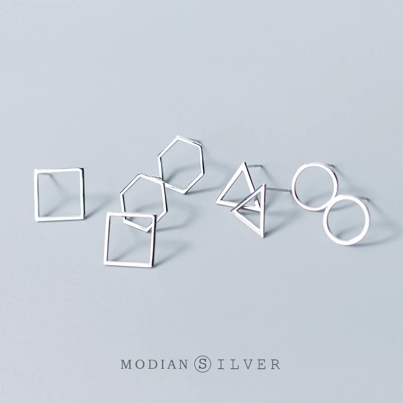 Серьги-гвоздики Женские квадратные, из серебра 925 пробы