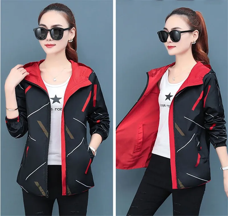 Куртка женская демисезонная с капюшоном, двухсторонняя, свободная, с мультяшным принтом, P369, 2021