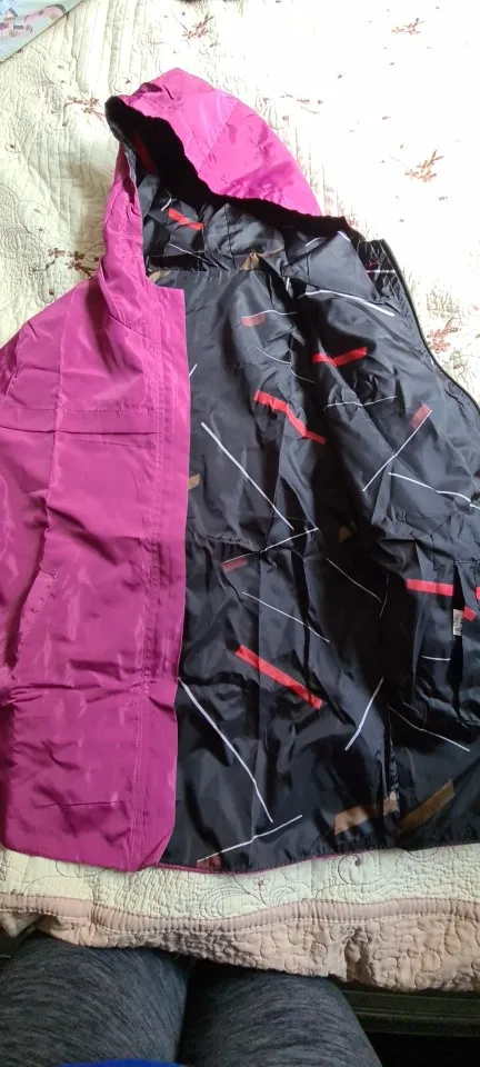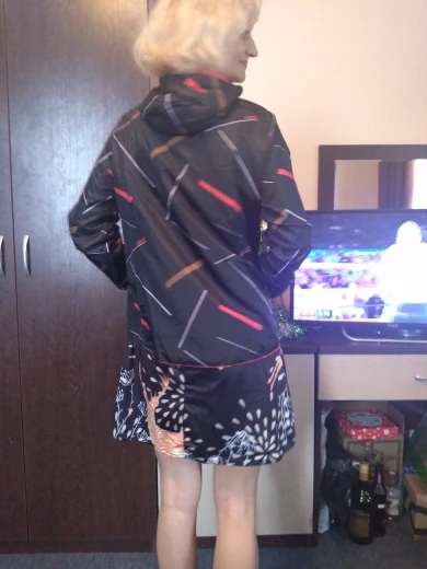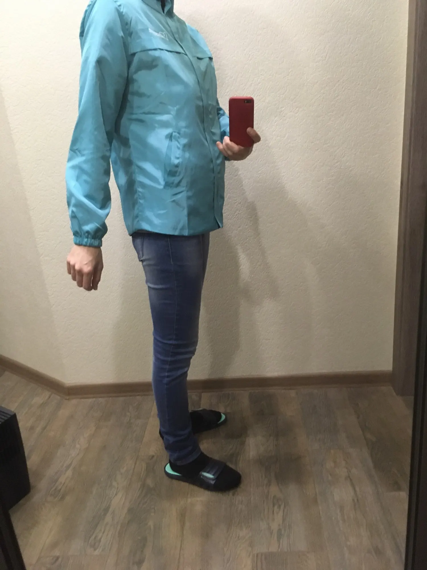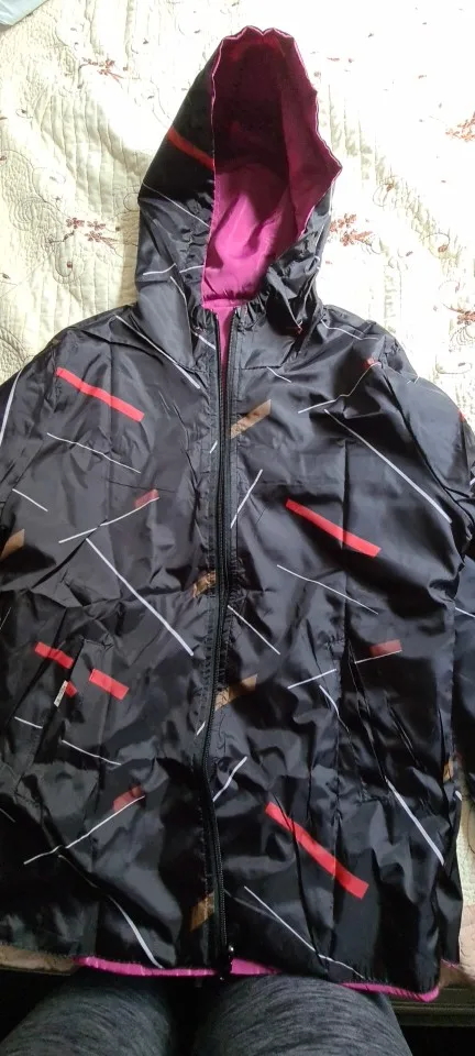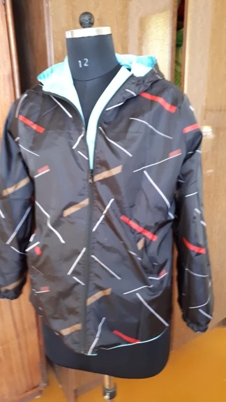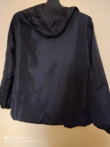 Своих денег стоит, ветровка тонкая, на вес 83 кг и беременность 8 месяцев , 3хл отлично, даже застегнулась на животе, голубая сторона излишне блестит, чёрная сторона притягивает мусор быстро, всякие пылинки былинки, спину укрывает , замок нормальный, рекомендую