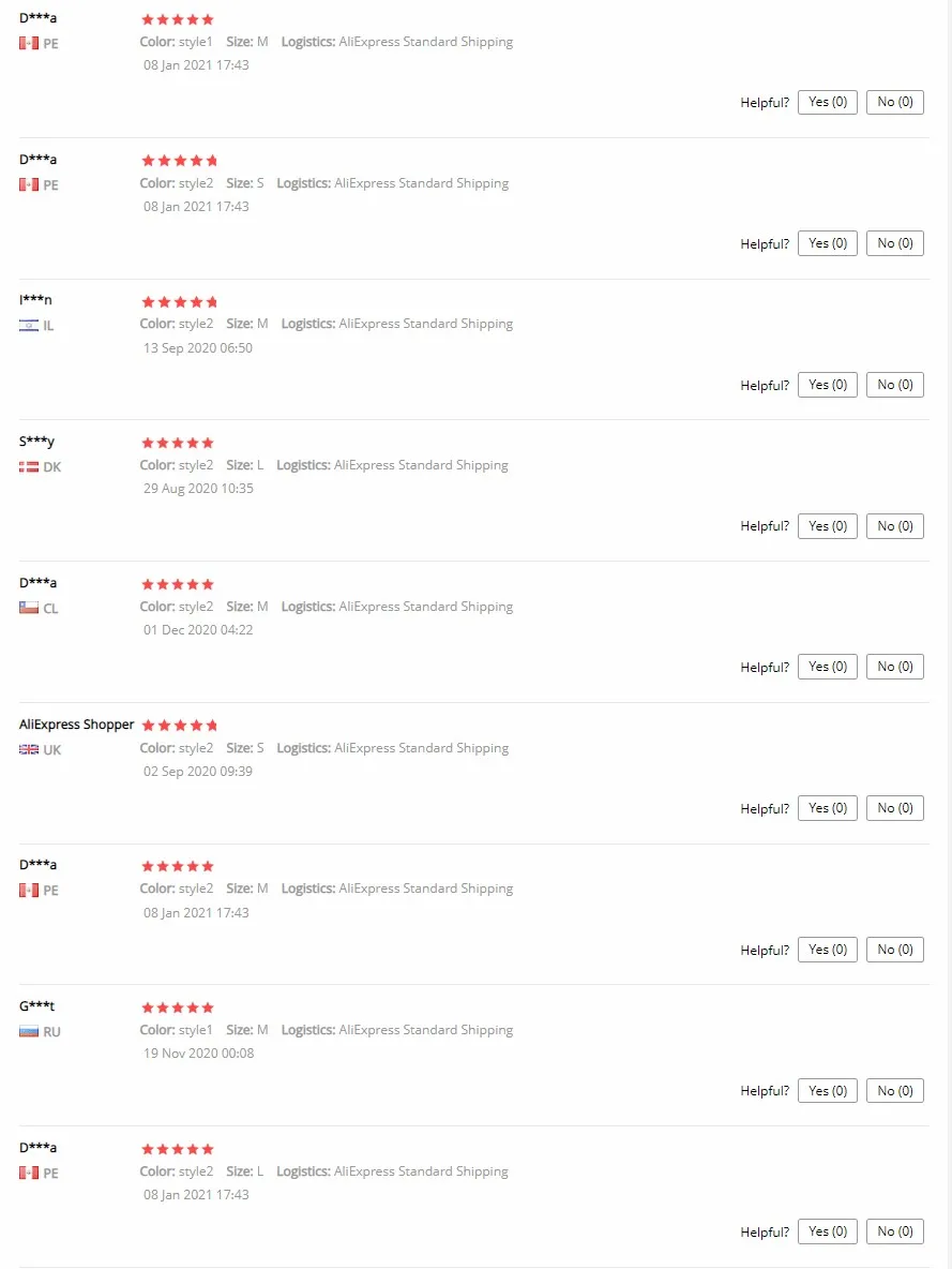 Страна: CL Color: style1 Size: L Доставка: Standard Shipping 09.11.2020