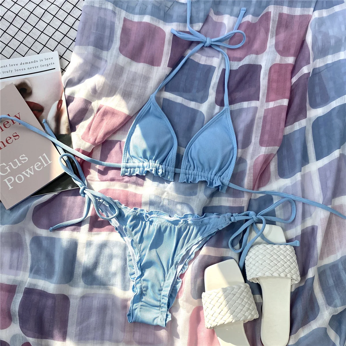 Женский раздельный купальник, бикини в горошек на косточках, с высокой талией, в стиле ретро, 2020