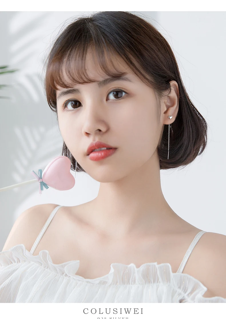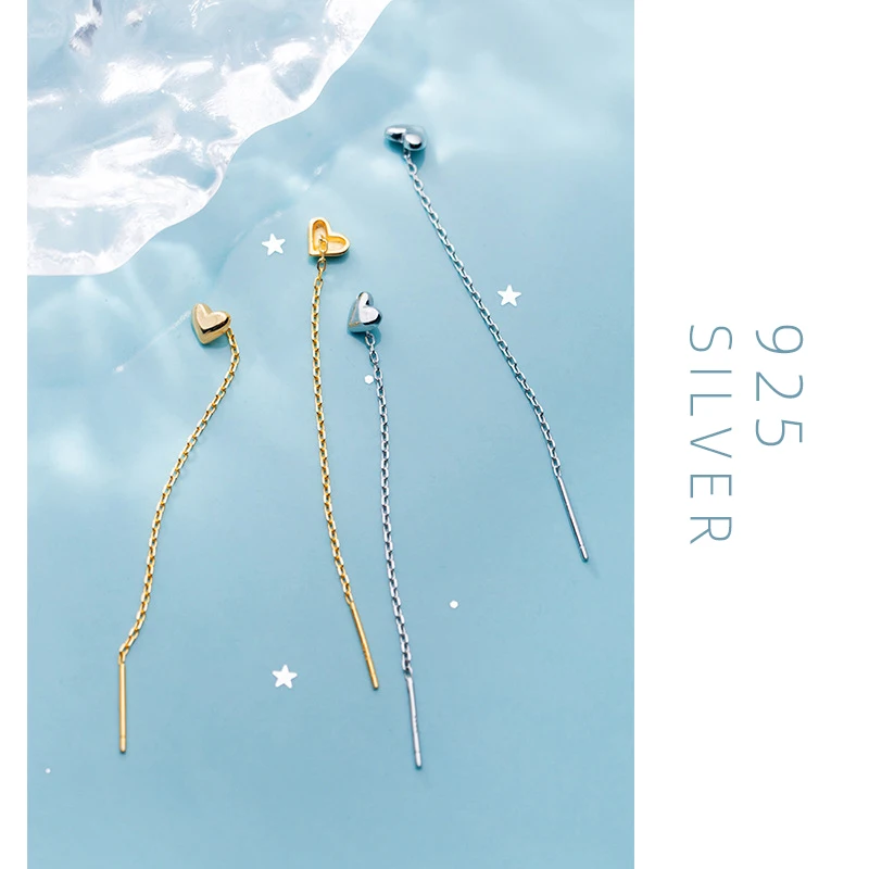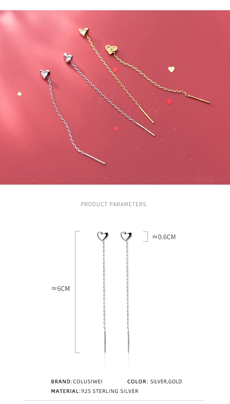 Colusiwei, Аутентичные 925 минималистские маленькие сердца, длинные серьги-подвески на цепочке для женщин, модные висячие серьги, ювелирные изделия в Корейском стиле