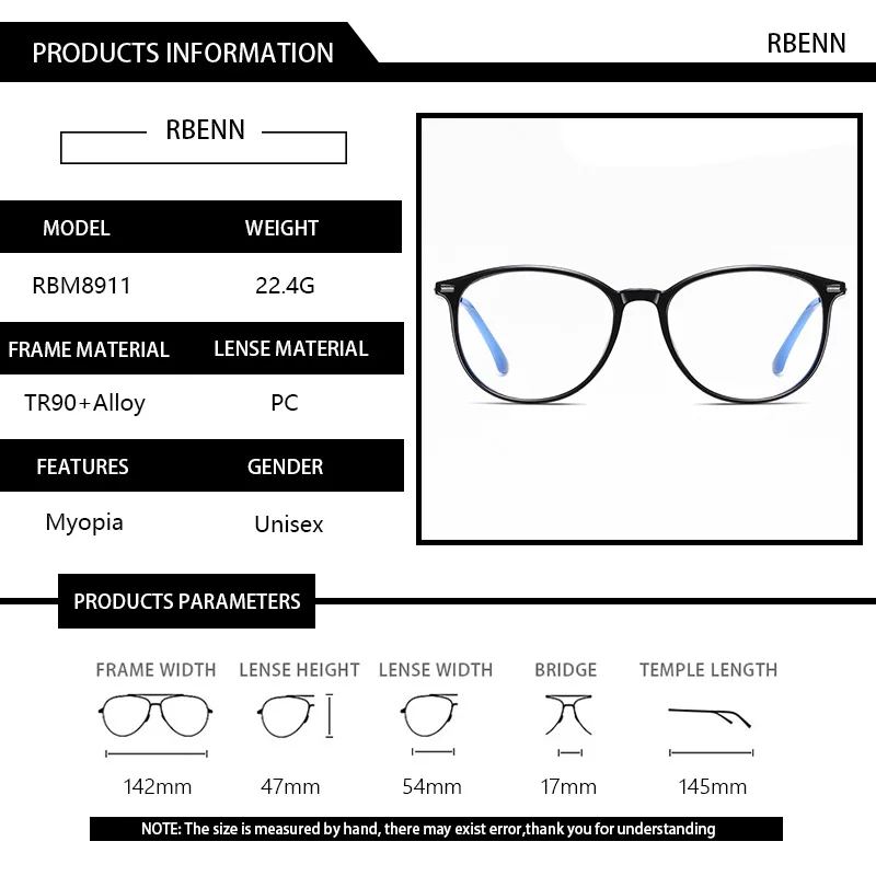 Мужские и женские Брендовые очки RBENN, дизайнерские очки для близорукости с защитой от синего светильник, очки для геймеров по рецепту, пользовательские линзы