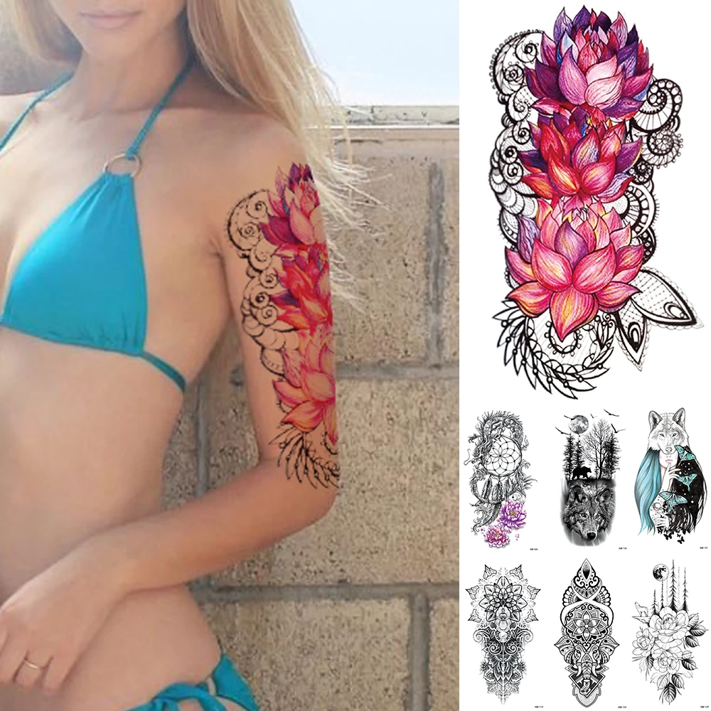 Водостойкая Временная тату-наклейка, розовые лотосы, розы, цветы, флэш-тату, богемный тотем, боди-арт, искусственная тату на руку для женщин и мужчин