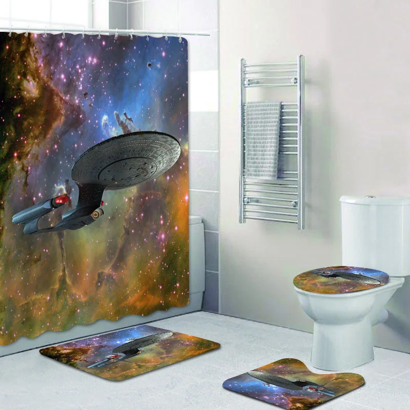 Забавный набор штор для душа StarTrek 1701D Eagle Nebula, Штора для ванной комнаты, коврик для ванной, ковер для туалетного декора, подарок