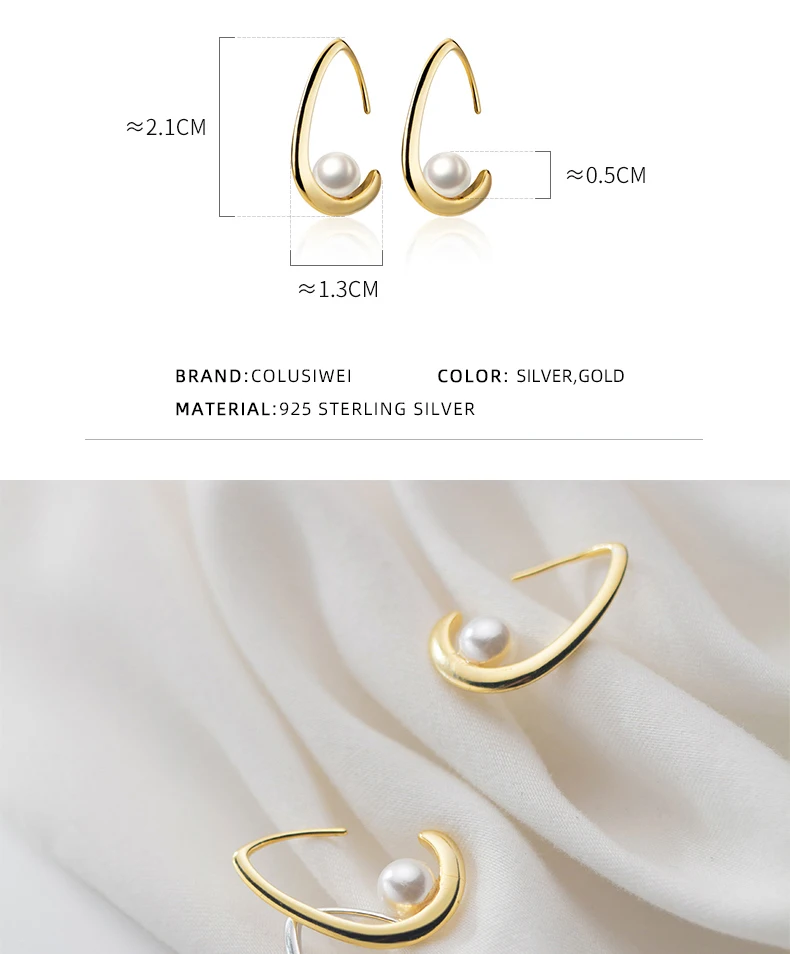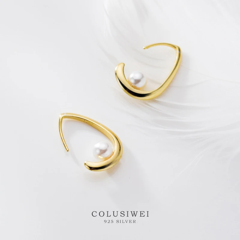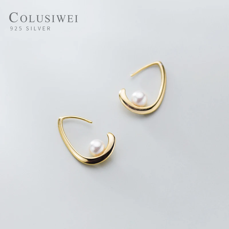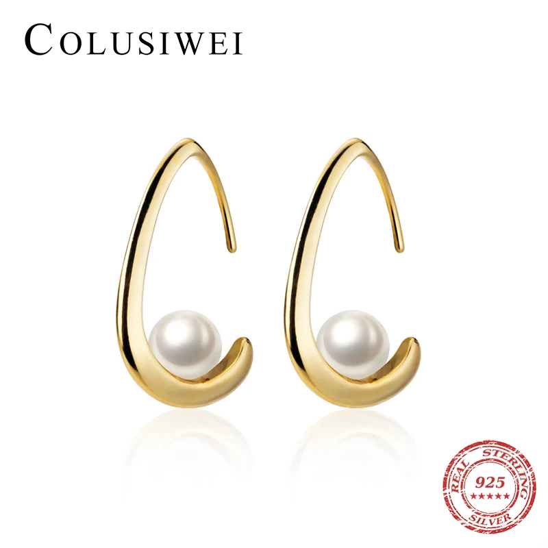 Colusiwei натуральная 925 стерлингового серебра капли воды, модные изысканные серьги-гвоздики для женщин Золотой Цвет Свадебный жемчуг, ювелирное изделие