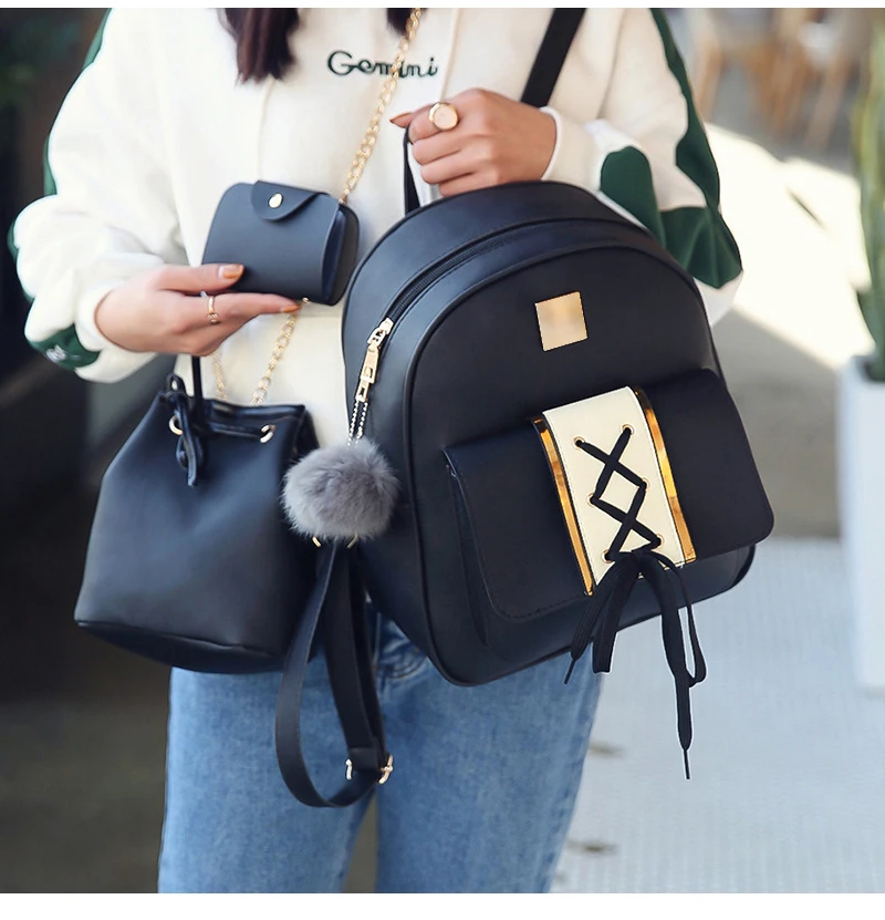 Рюкзак женский из искусственной кожи, школьный, дорожный, 3 шт.