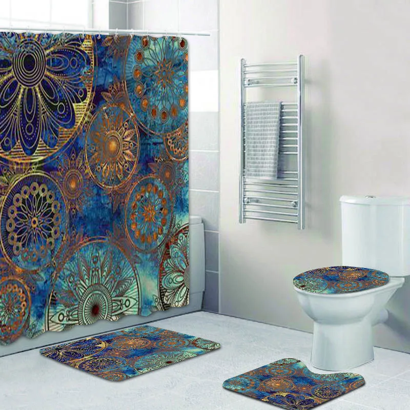 Стильный золотой, синий, фиолетовый, мандала, набор штор для душа, Абстрактный Цветочный Дамаск, Штора для ванной комнаты, коврик для ванной, коврик для медитации, спа Декор