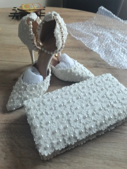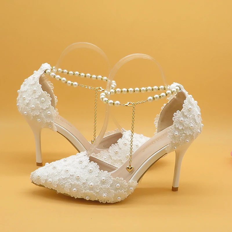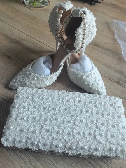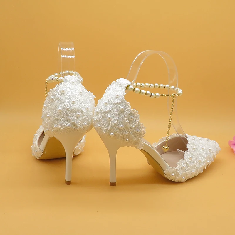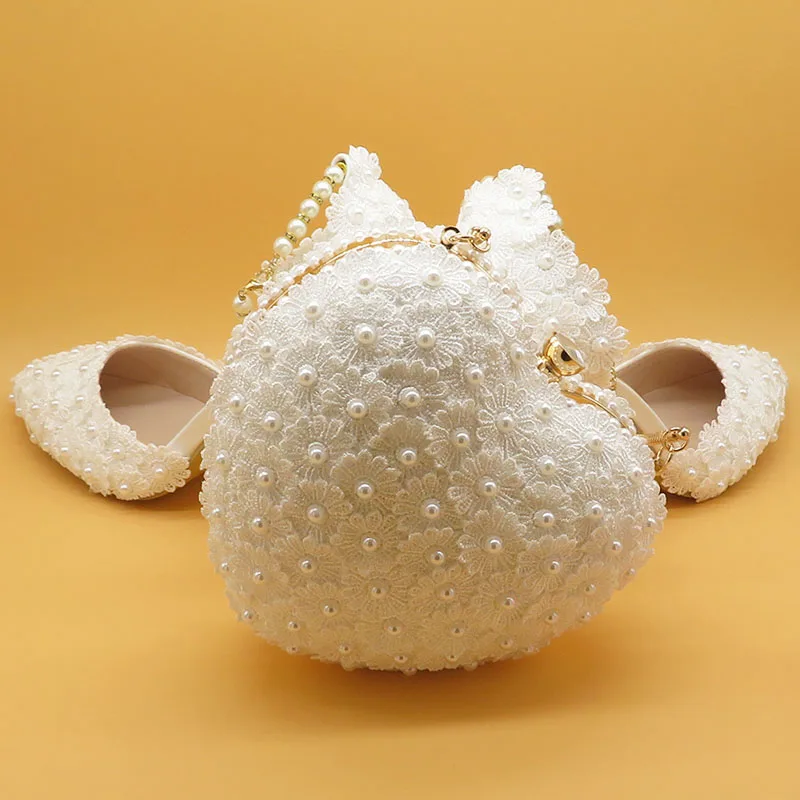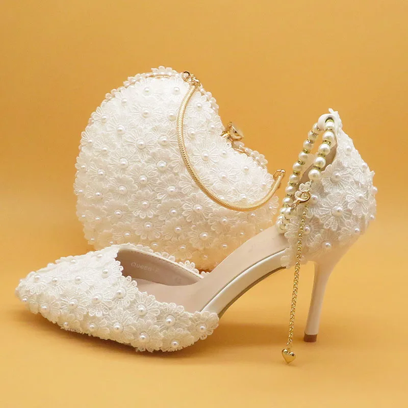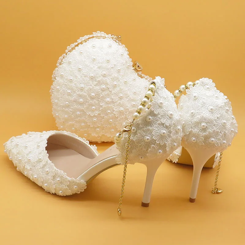 Комплект из белых туфель и сумки с цветочным кружевом, туфли на высоком каблуке с острым носком и ремешком на щиколотке, женские вечерние туфли с сумочкой на шнуровке
