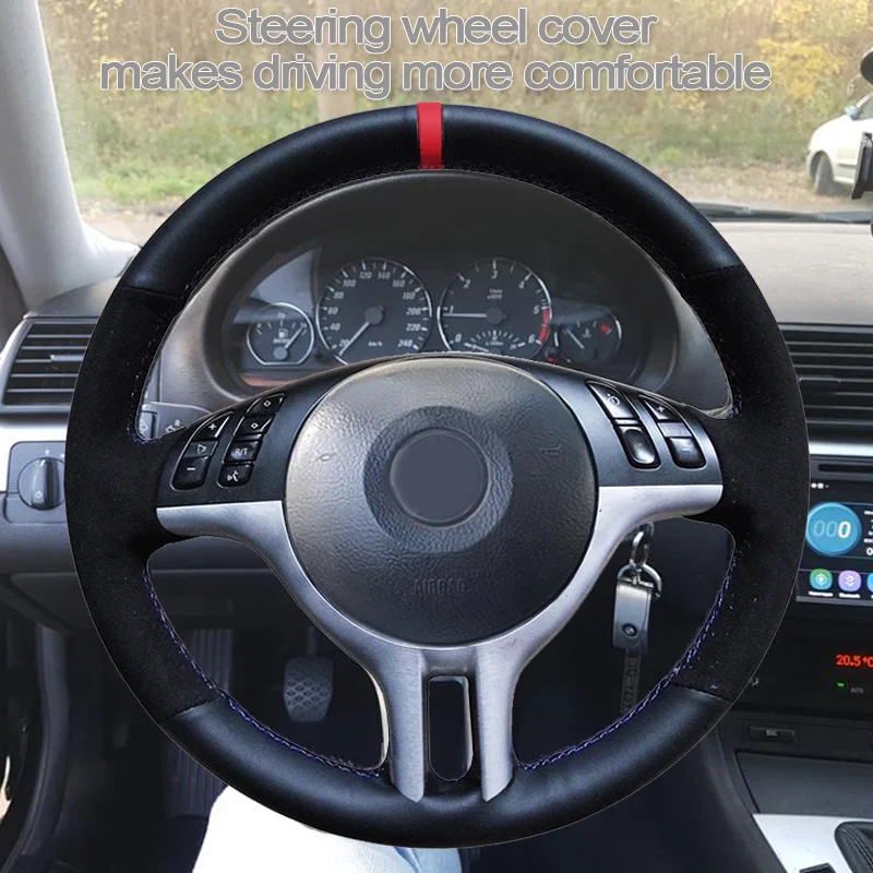 Черная замшевая чехол рулевого колеса автомобиля CARDAK для BMW E46...