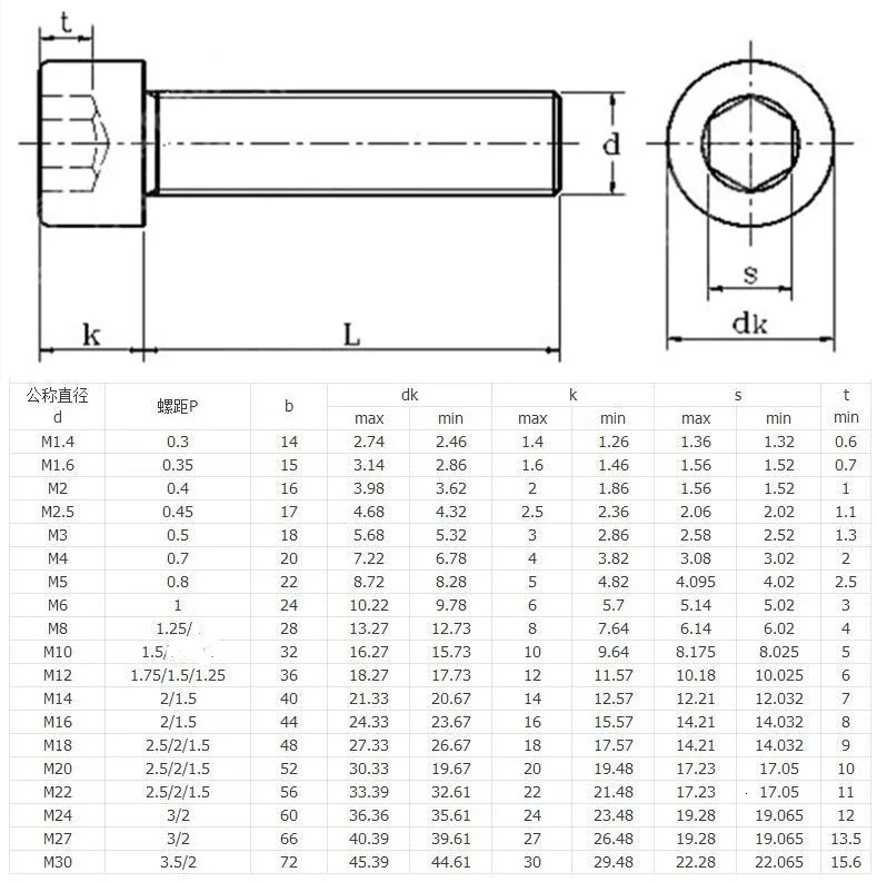 specificationM1.6 M2 M2.5 M3 M4 M5 M6