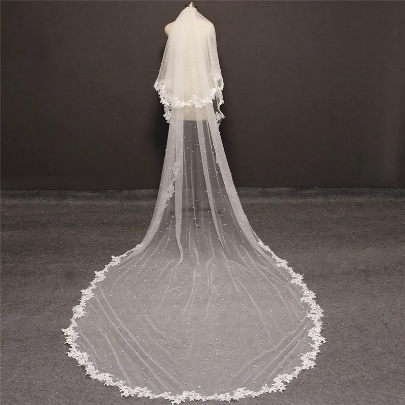 Свадебные накидки с жемчугом, длина 3 метра, Белыйцвет слоновой кос...