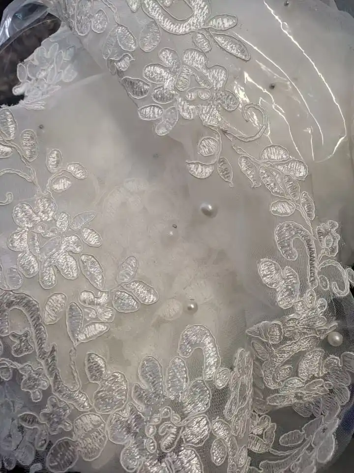 Реальные фотографии цветочное кружево, аппликация 2 яруса свадебная...