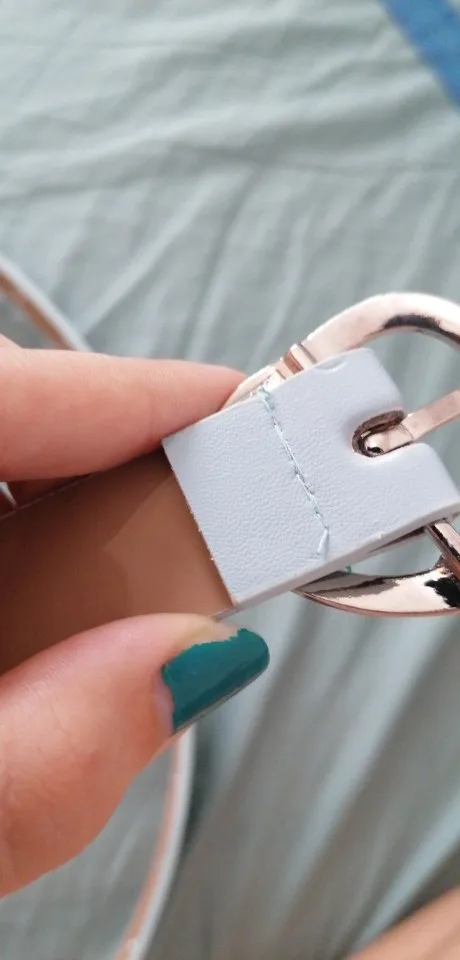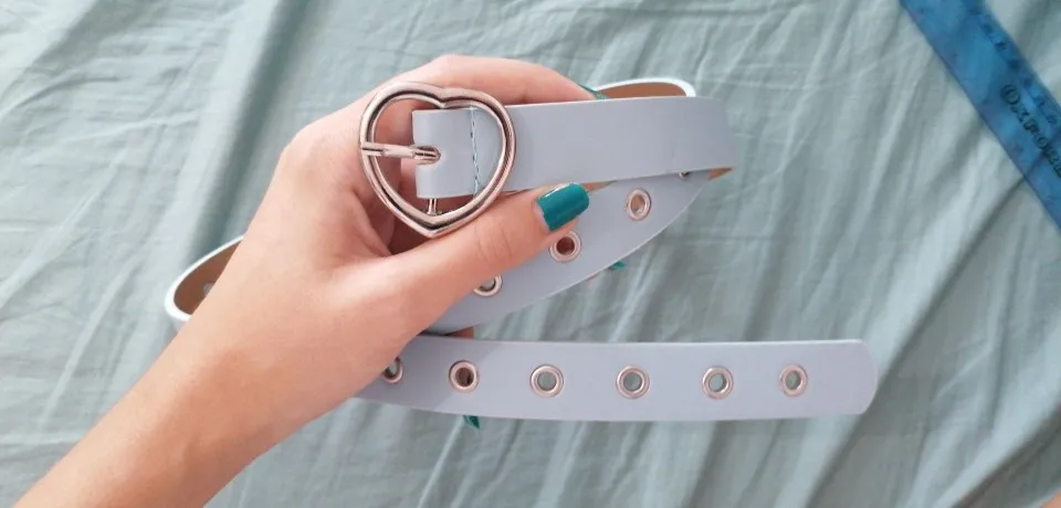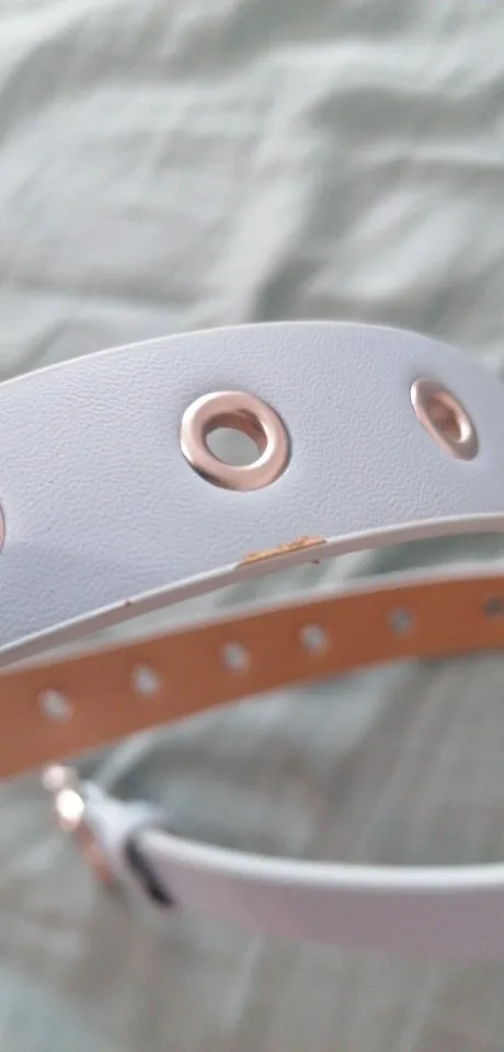 Цвет довольно точный на картинке, и я не думаю, что он начнет очищаться в ближайшее время. Внутри коричневый цвет. Ремень сам по себе тоньше, чем ожидалось, и я не уверен, что доверю шитью, где прикреплена пряжка для ремня. Пряжка в виде сердца довольно прочная (и милая), но она тонкая. В основном есть отверстия (которые мне нравятся). Мой пришел немного поцарапанный, но он почти не заметен (мне нужно было правильно найти его, когда я хотел сделать фотографию)