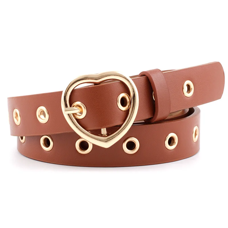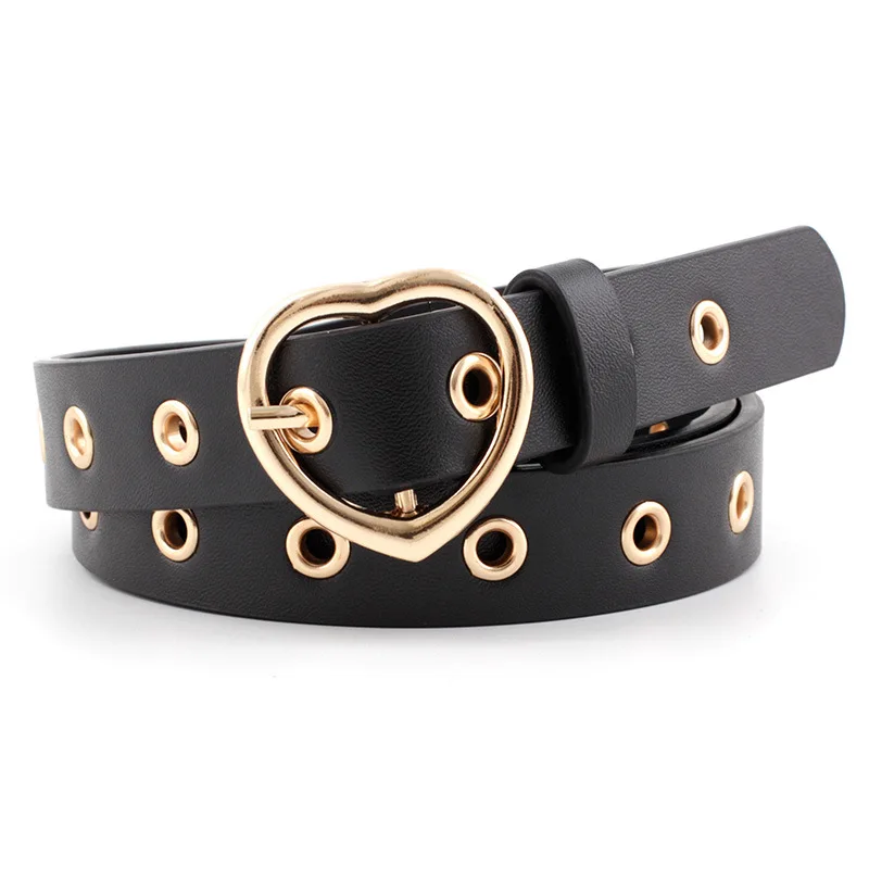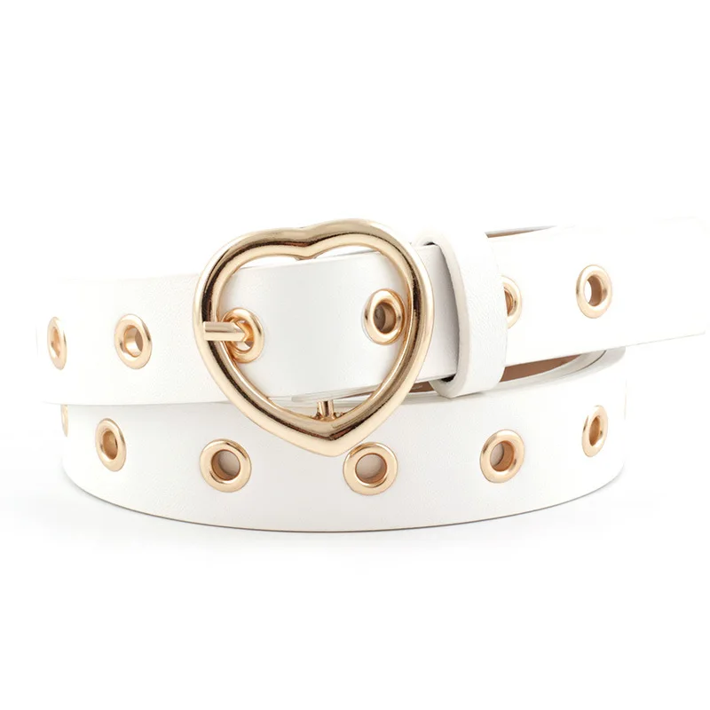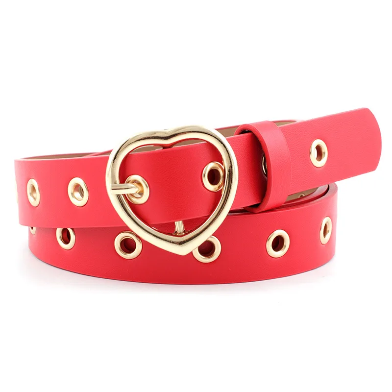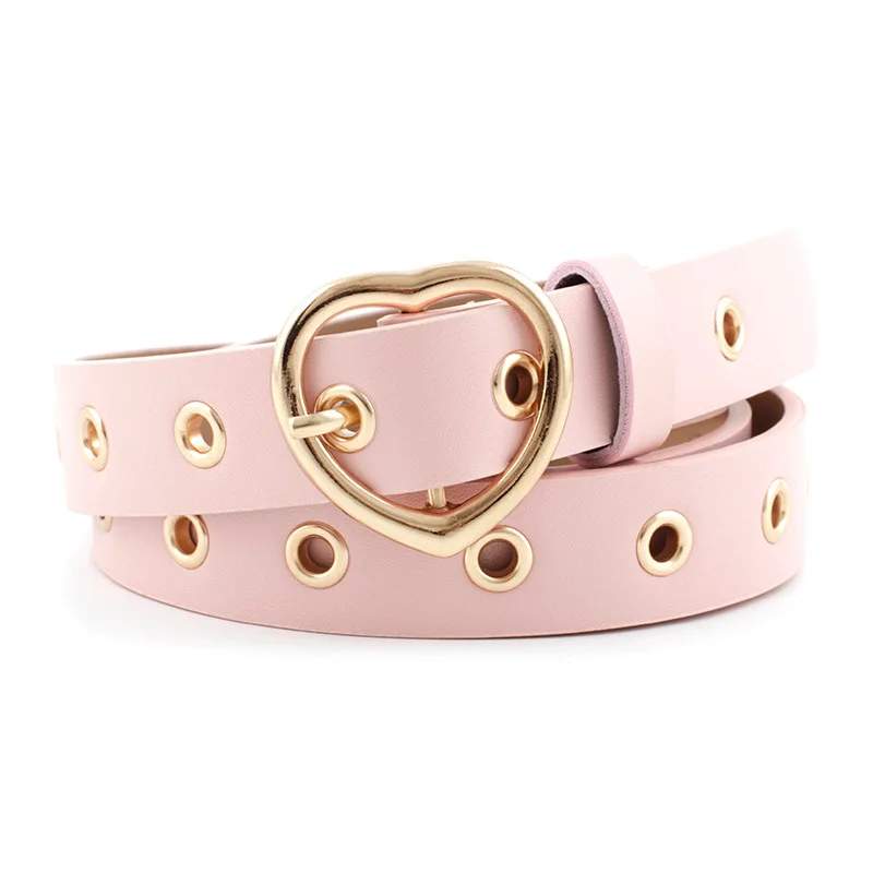 Ремень женский кожаный с золотистой пряжкой, черного, розового, белого, красного цвета, с люверсами в стиле панк, 2020