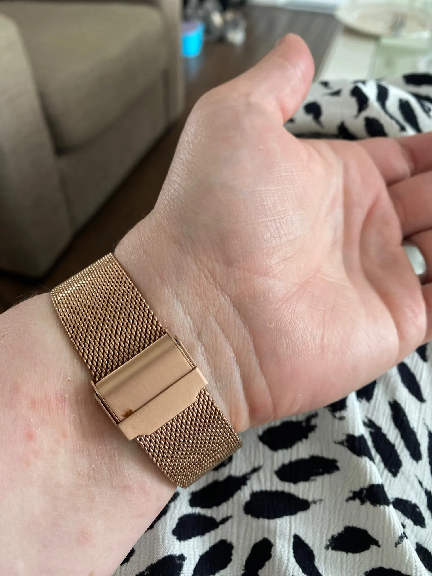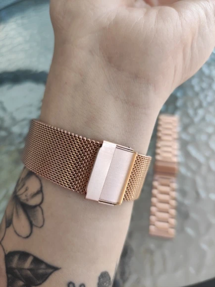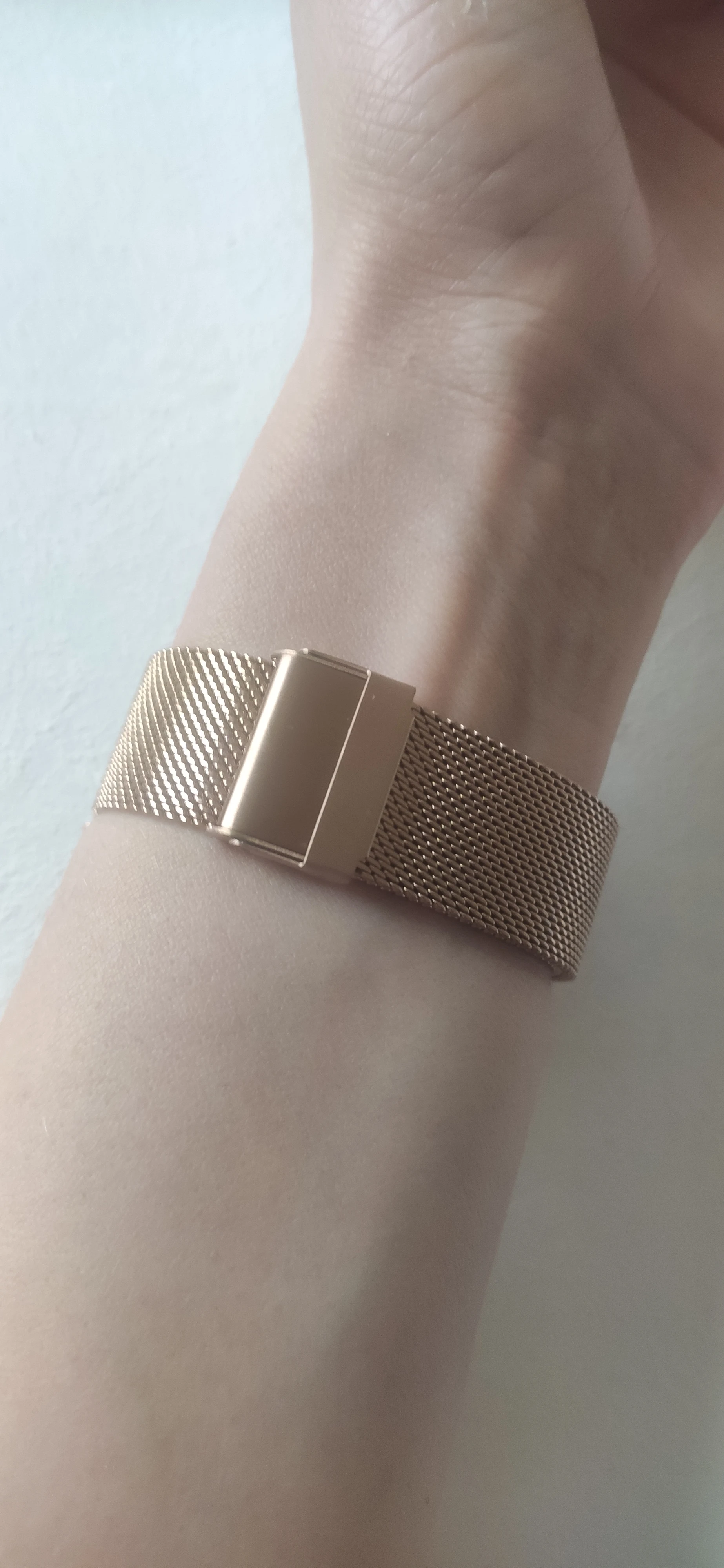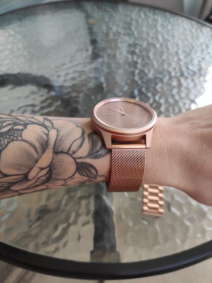 Good quality. Color depending on light looks more Gold, not Rose Gold, but the difference is not so critical. The strap looks qualitative, fits well and firmly. Fits for Garmin Vivomove Style. Delivery to Latvia took 2 weeks.