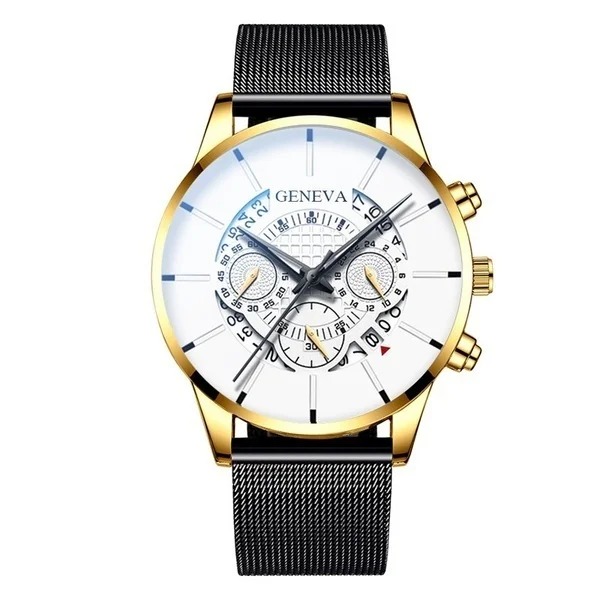 GENEVA Men's Watch Sport Stainless Steel With Calendar Quartz Wrist Watch Men Luxury Male Clock relogio masculino reloj hombre