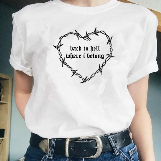 Kuakuayu HJN Back To Hell где я нахожусь футболка для женщин Tumblr Мода 90s кибер-футболка с готическим рисунком на каждый день; С короткими рукавами; Футболка
