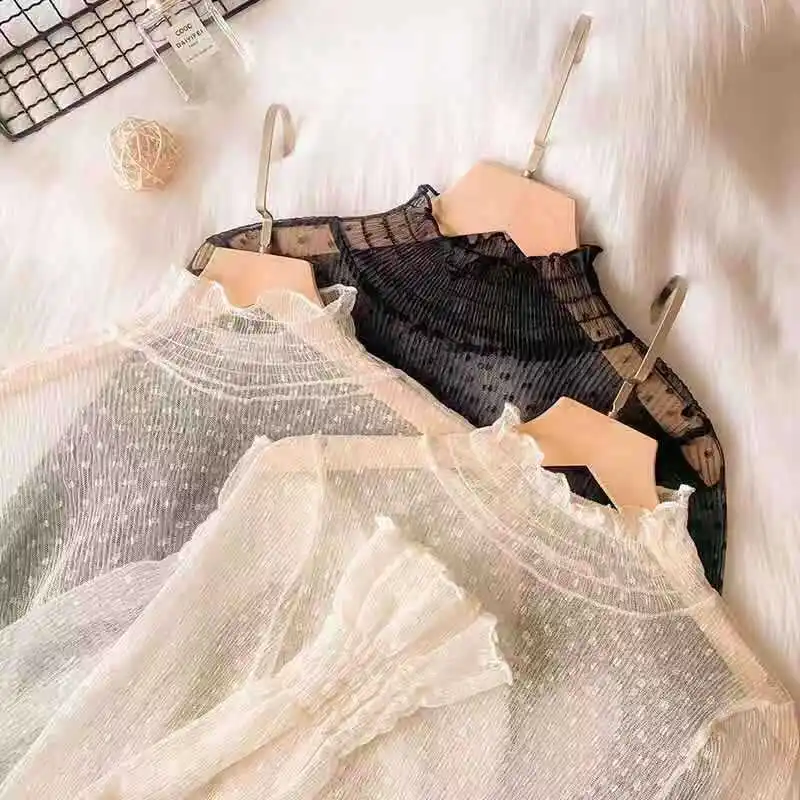 Высококачественный японский мягкий сетчатый топ для девушек, женская кружевная прозрачная водолазка с длинным рукавом и прозрачным тюлем