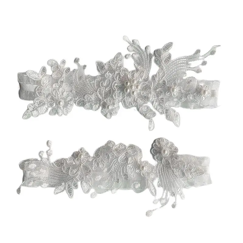 Женский набор колец ручной работы с цветочной кружевной сеткой и аппликацией, имитация жемчуга, Украшенные бусинами, свадебные эластичные подвязки для ног
