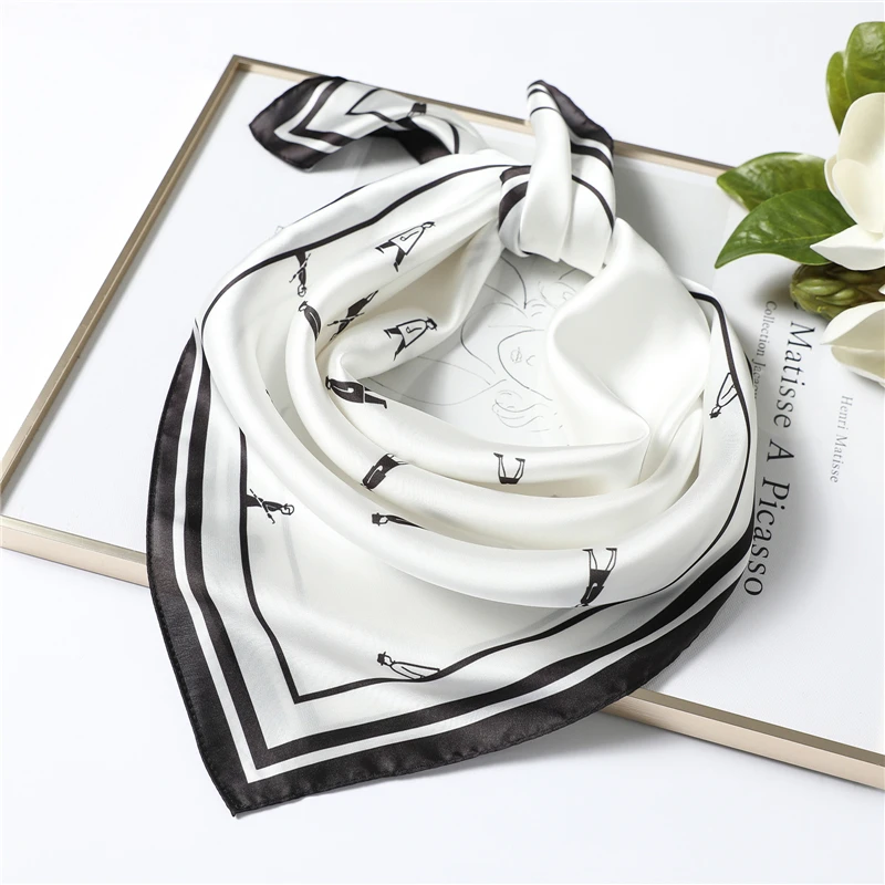 Шарф женский, Шелковый, квадратный, 70 см, с мультяшным принтом, модная повязка для волос