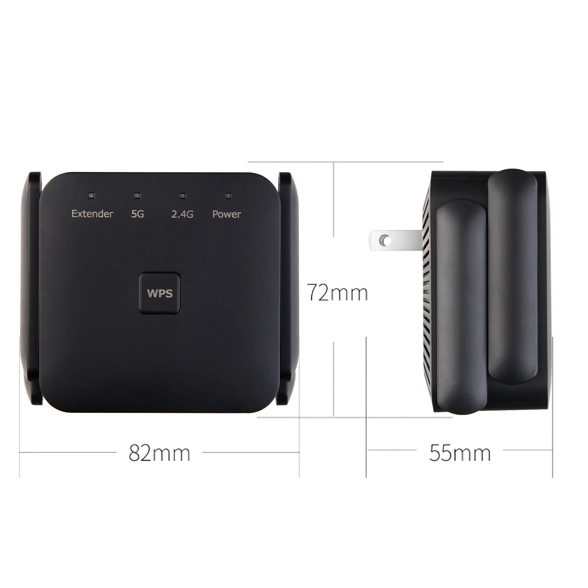 Этот двухдиапазонный ретранслятор Wi-Fi в основном используется для обеспечения бесплатного wifi обслуживания в больших областях, таких как фабрика, сообщество, улица, дом или т. Д. Например, обычный усилитель может расходовать расстояние до 50 ~ 100 метров. Если есть больше ретрансляторов или больше ретрансляторов питания, диапазон будет расширен дальше; Ретранслятор одновременно поддерживает Беспроводное сетевое соединение 2,4G и 5G, И он может поддерживать скорость передачи 2,4G или 5G до 1200M. Он имеет антенны 2dBi, обеспечивающие еще лучшую беспроводную производительность, скорость передачи, технологию стабильности, которая автоматически позволяет избежать коллизии каналов с помощью функции выбора канала.