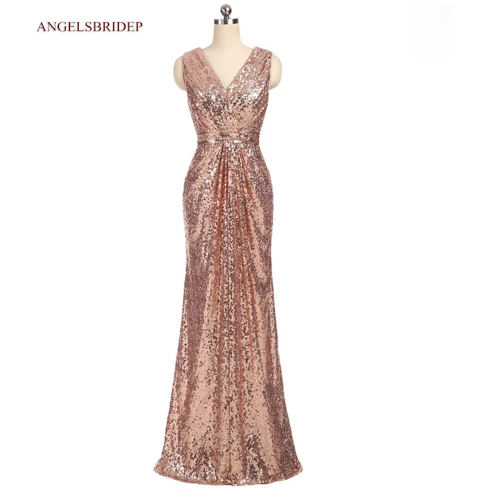 Розовое золото Сверкающее расшитое блестками длинное вечернее платье Вечерние платья Формальные v-образным вырезом длиной до пола Abendkleider выпускное платье Лидер продаж