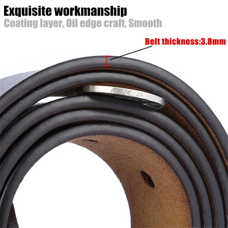 Большие размеры Аутентичные 3,8 см ширина для мужчин неподдельный кожаный пояс, второй слой из воловьей кожи с отверстиями пояс с пряжкой, сплавная Пряжка 145 см удлиненный стиль