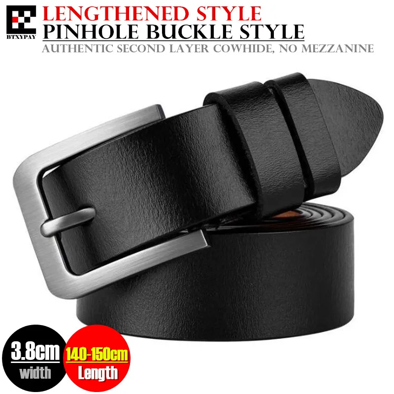 Мужской ремень из натуральной кожи шириной 3,8 см, ремень с пряжкой из коровьей кожи второго слоя, удлиненный ремень с пряжкой из сплава длиной 145 см