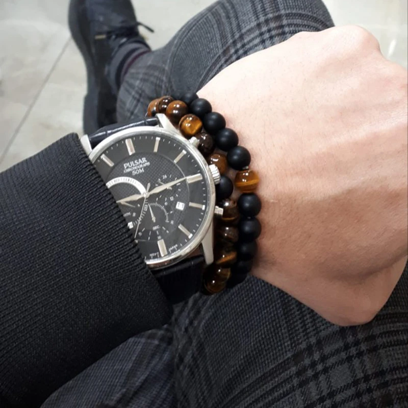 Мужской классический браслет из бисера, матового и тигрового глаза, 2 шт.компл., 8 мм
