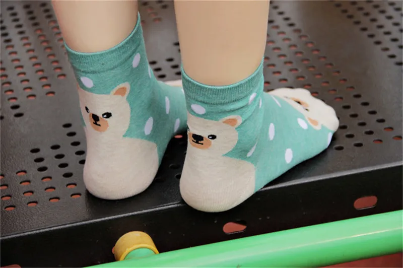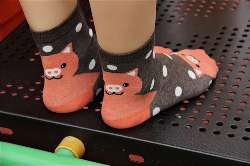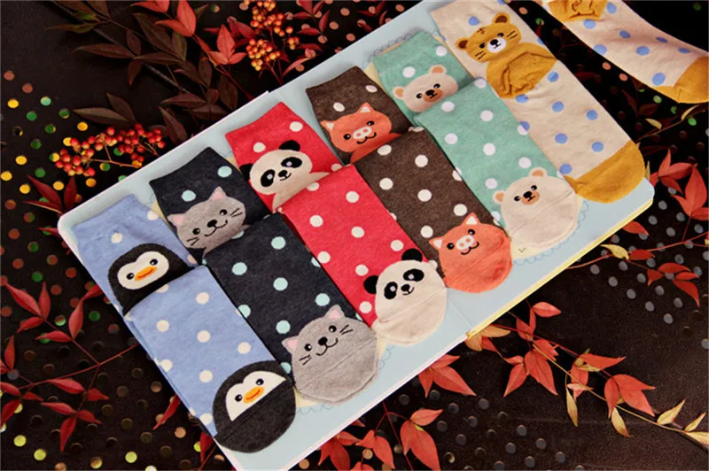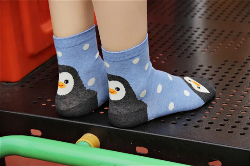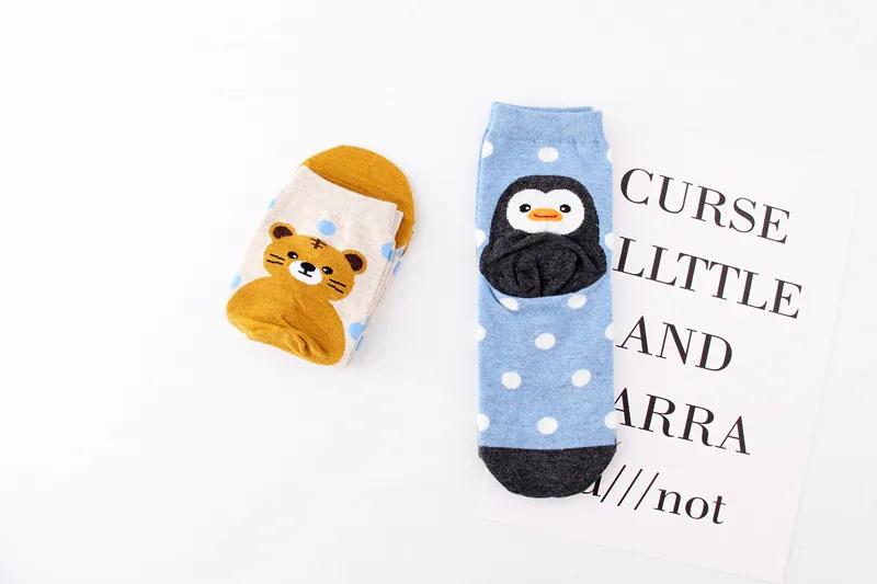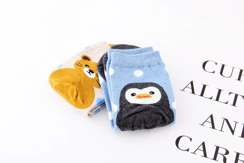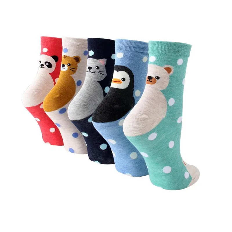 Носки женские хлопковые цветные с рисунком пингвина медведя свиньи тигра, 5 пар