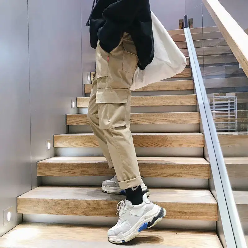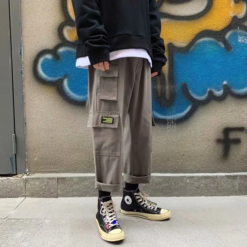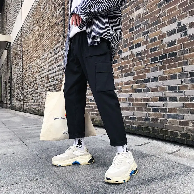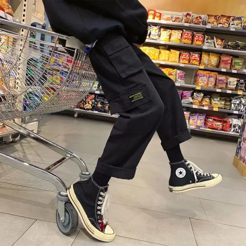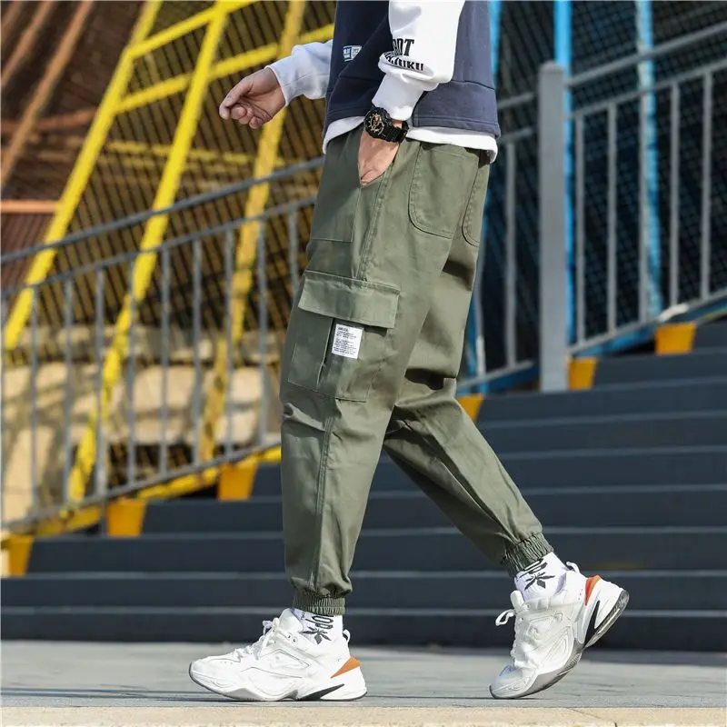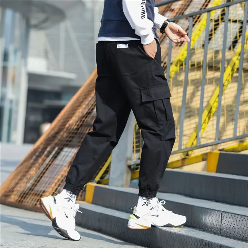 Брюки мужские с вышивкой китайской надписью, повседневные штаны с лентами, джоггеры, шаровары в стиле Харадзюку, спортивные штаны, весна-осень