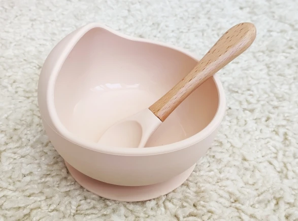Детский силиконовый набор для кормления, деревянная ложка , миска на присоске, Детская тарелка для малышей, вспомогательная посуда , BPA бесплатно, высококачественный силикон